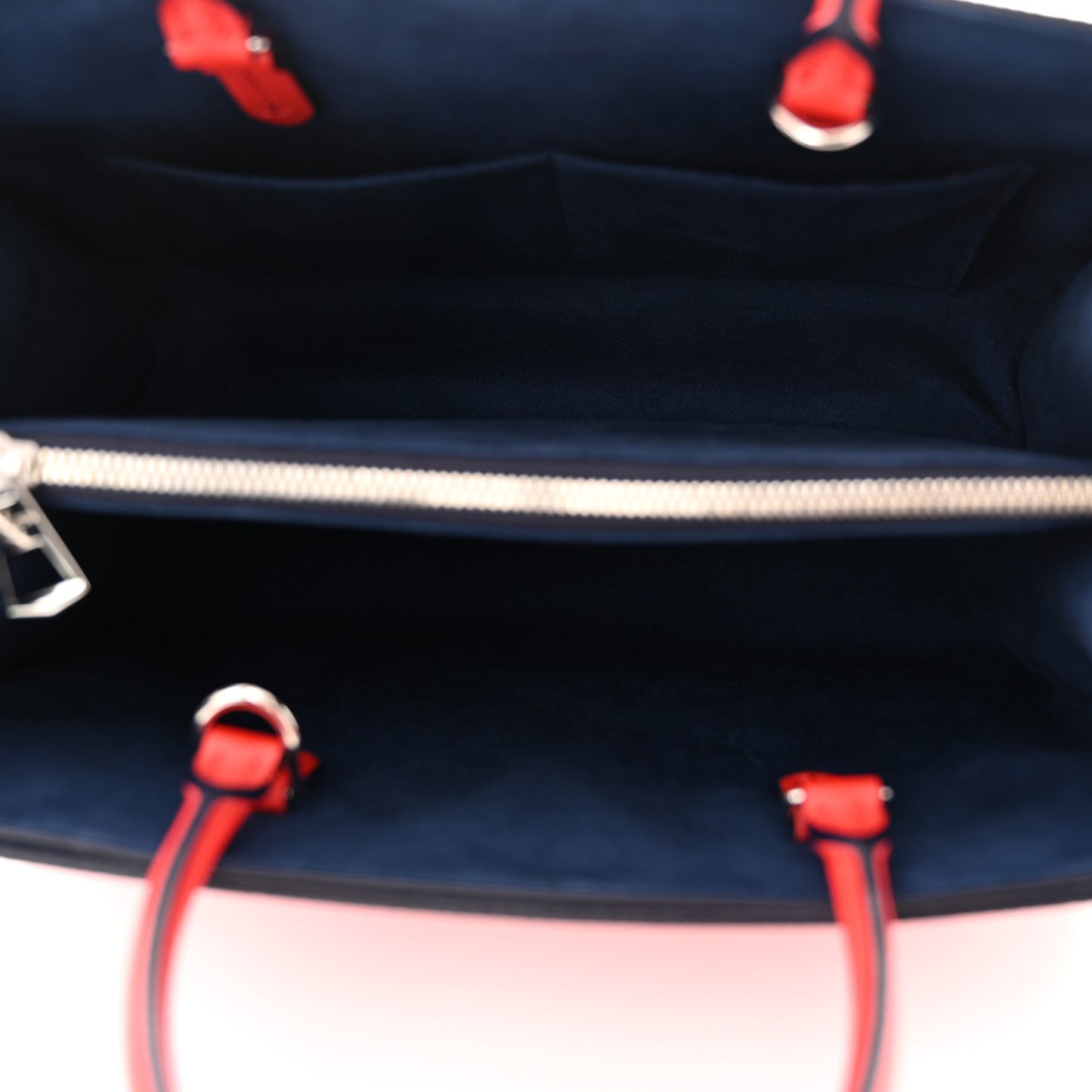 This is an authentic LOUIS VUITTON Epi Twist Tote in Coquelicot. This stylish tote is crafted of textured epi leather in red. The handbag features rolled top handles, an optional red leather shoulder strap, blue glazing trim, leather side straps, and polished silver hardware including a frontal LV turn lock. The top opens to a partitioned blue microfiber interior with a center zipper compartment and patch pockets.Follow this item for alerts. Louis Vuitton is a registered trademark of Louis Vuitton. FASHIONPHILE is not affiliated with Louis Vuitton.