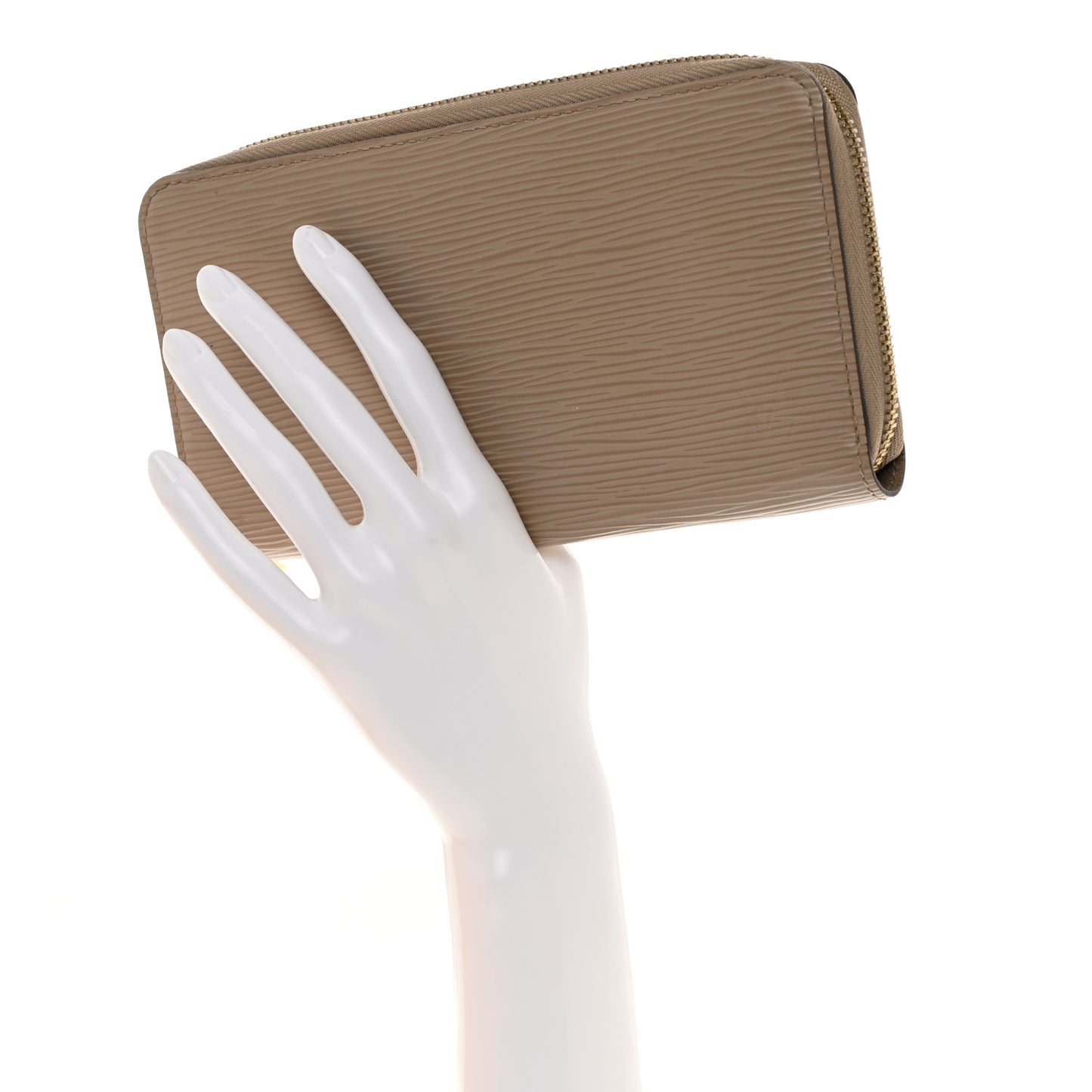 This is an authentic LOUIS VUITTON Epi Zippy Wallet in Galet. This stylish wallet is crafted of Louis Vuitton's signature textured epi leather in beige. The wallet has a 3/4 wrap-around zipper and opens to a beige cross-grain partitioned leather interior with patch pockets, card slots, and a zipper compartment.Follow this item for alerts. Louis Vuitton is a registered trademark of Louis Vuitton. FASHIONPHILE is not affiliated with Louis Vuitton.