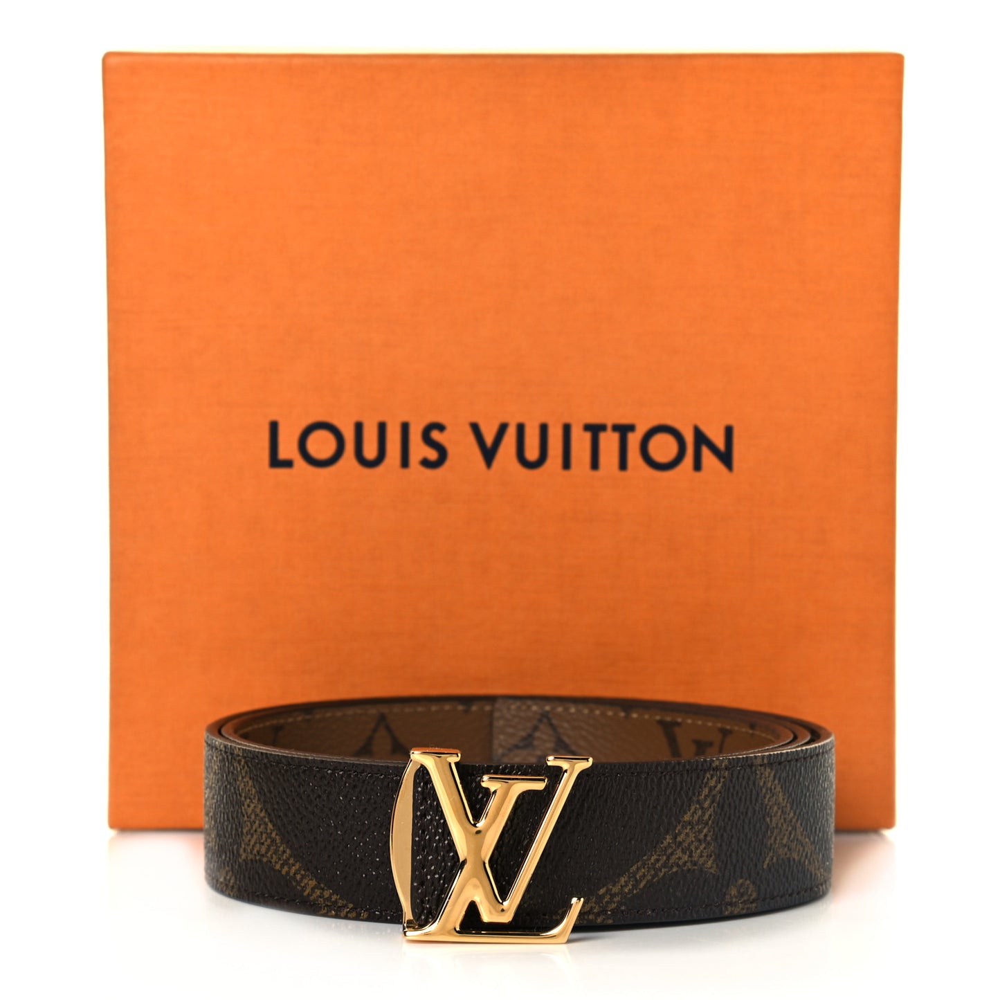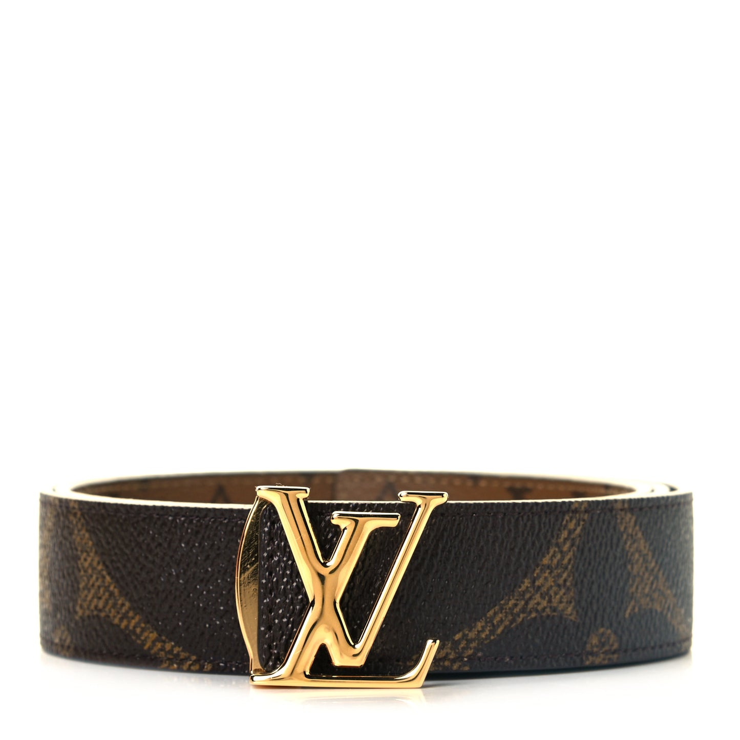 This is an authentic LOUIS VUITTON Giant Monogram 30mm LV Iconic in Reversible Belt size 85 or 34. The bold style and stunning detailing of this Louis Vuitton belt make it a fabulous fashion accessory. It has the classic Louis Vuitton monogram on coated canvas in dark brown and reverses to a light brown with a Louis Vuitton LV logo buckle.Follow this item for alerts. Louis Vuitton is a registered trademark of Louis Vuitton. FASHIONPHILE is not affiliated with Louis Vuitton.