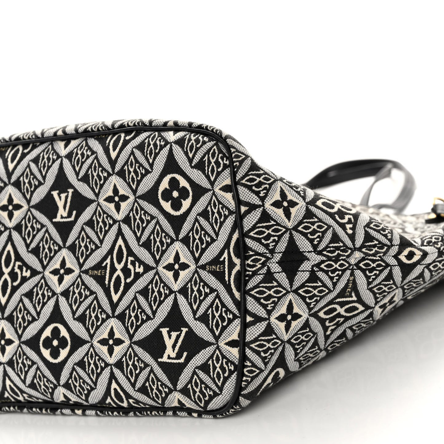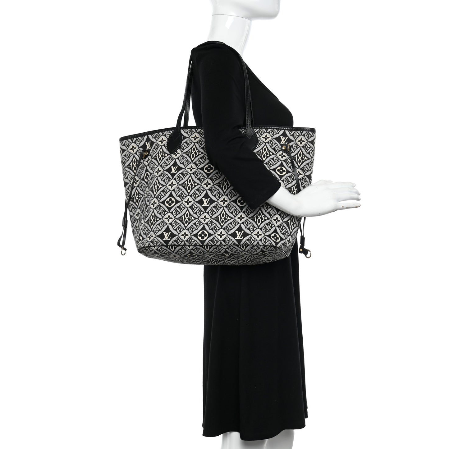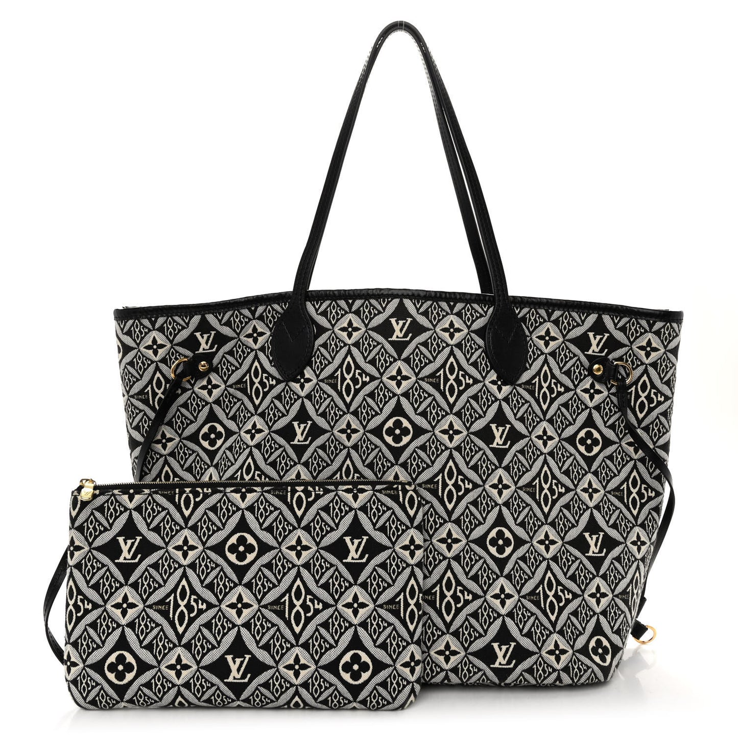 This is an authentic LOUIS VUITTON Jacquard Since 1854 Neverfull MM in Grey. This chic handbag is crafted of black and white jacquard Since 1854 fabric with black cowhide leather shoulder straps and trim. The top is open to a black microfiber interior with a hanging zipper pocket and a matching pochette.Follow this item for alerts. Louis Vuitton is a registered trademark of Louis Vuitton. FASHIONPHILE is not affiliated with Louis Vuitton.