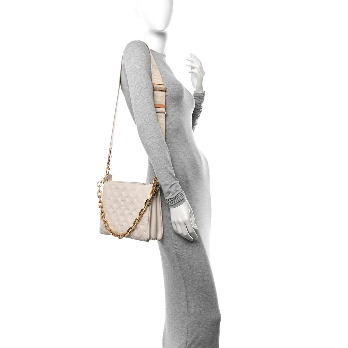 Louis Vuitton/ Bags/ Handbags /Louis Vuitton Lambskin Embossed Monogram Coussin PM Beige Cream