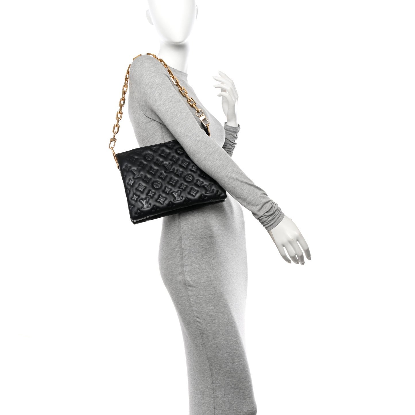 Louis Vuitton/ Bags/ Shoulder Bags /Louis Vuitton Lambskin Embossed Monogram Coussin PM Black
