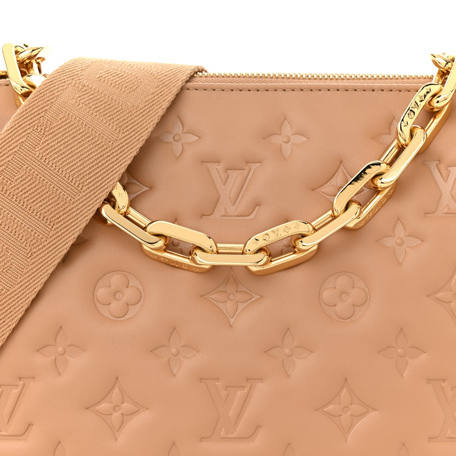 Louis Vuitton/ Bags/ Clutch & Evening /Louis Vuitton Lambskin Embossed Monogram Coussin PM Camel
