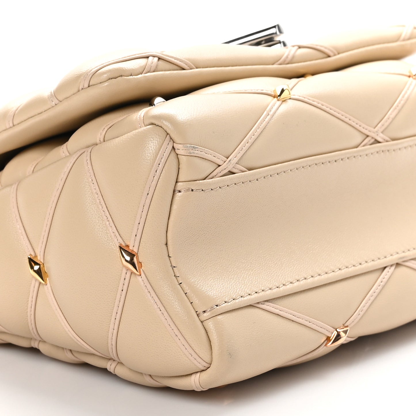 Louis Vuitton/ Bags/ Shoulder Bags /Louis Vuitton Lambskin Studded Malletage Top Handle GO-14 MM Beige