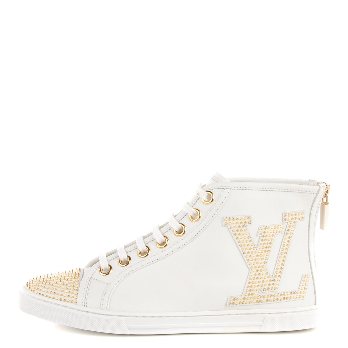 Louis Vuitton/ Accessories/ Shoes /Louis Vuitton Leather Studded Punchy High Top Sneakers 36 White Gold