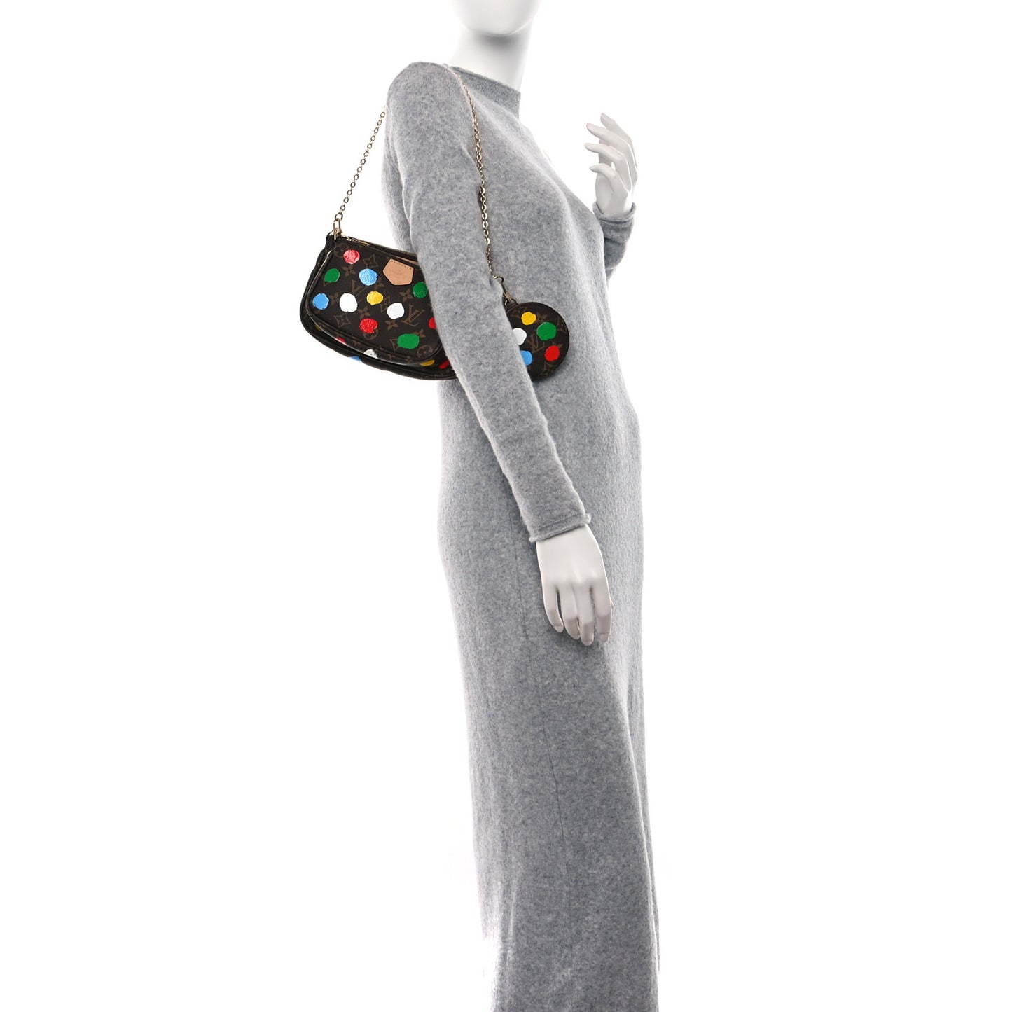 This is an authentic LOUIS VUITTON LV X YK Monogram Multi Pochette Accessories. This pochette is crafted of classic Louis Vuitton monogram on coated canvas with an overlay of colorful dots designed by artist Yayoi Kusama. The pochette features a gold chain strap, a small pochette, and a removable coin purse. The gold top zipper opens to a dotted red fabric interior.Follow this item for alerts. Louis Vuitton is a registered trademark of Louis Vuitton. FASHIONPHILE is not affiliated with Louis Vuitton.