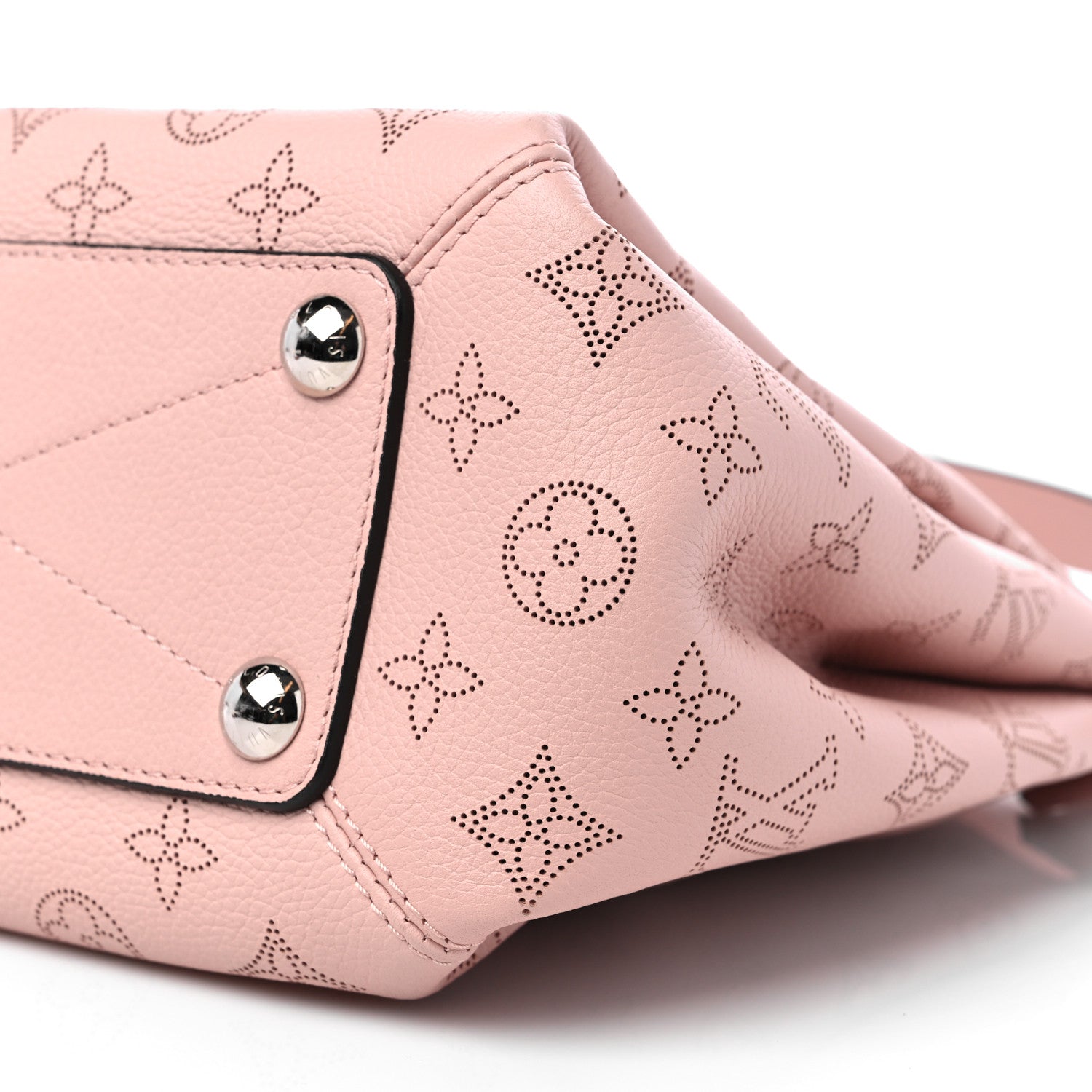 This is an authentic LOUIS VUITTON Mahina Babylone Chain BB in Magnolia. This tote is crafted of perforated Louis Vuitton monogram in light pink leather. It features a signature pink leather trim top handle, an optional shoulder strap, and silver hardware. The top zipper opens to a brown microfiber interior with zipper and patch pockets.Follow this item for alerts. Louis Vuitton is a registered trademark of Louis Vuitton. FASHIONPHILE is not affiliated with Louis Vuitton.