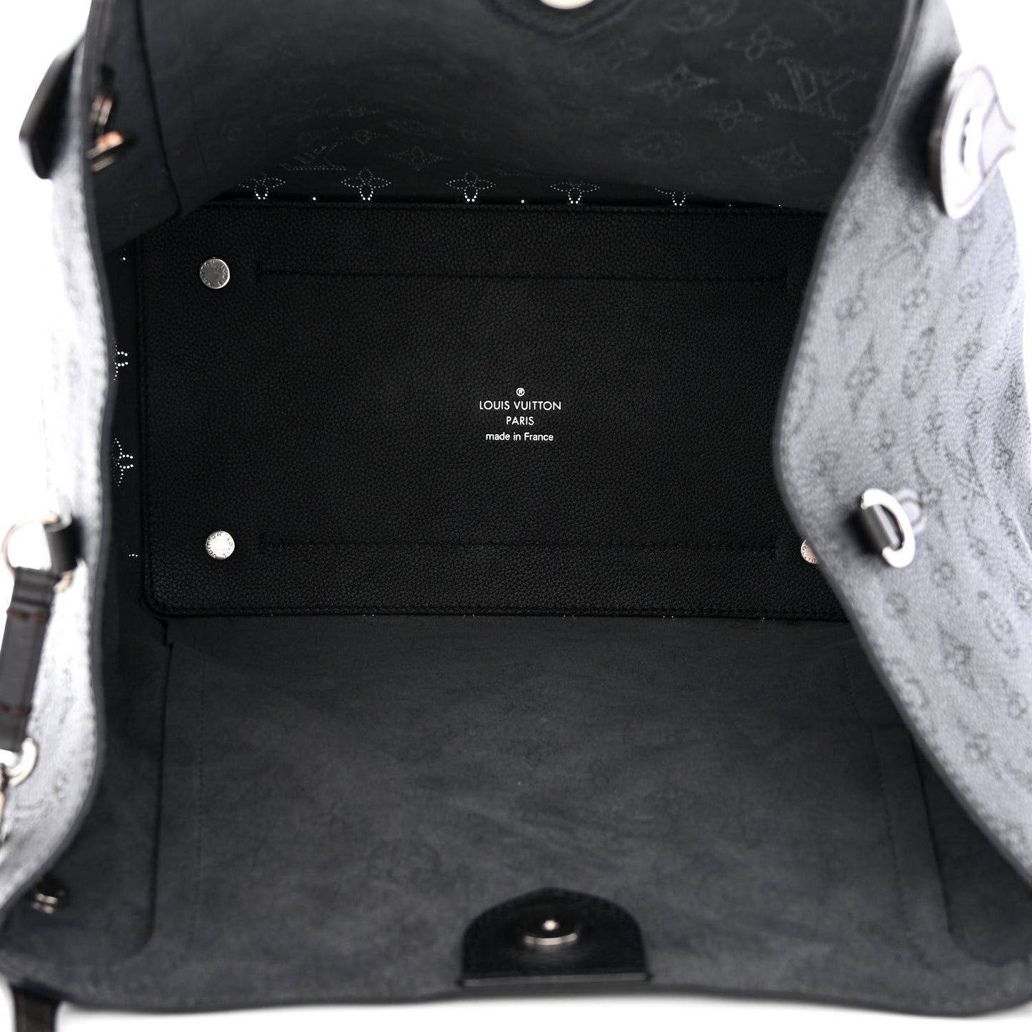 This is an authentic LOUIS VUITTON Mahina Hina MM in Black. This stylish hobo is crafted of Louis Vuitton monogram perforated leather in rich black. The shoulder bag features a sturdy looping leather shoulder straps with polished silver links. The top opens to a grey microfiber interior.