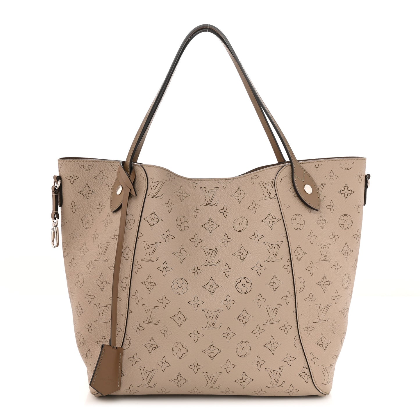 This is an authentic LOUIS VUITTON Mahina Hina MM in Galet. This stylish tote is crafted of classic Louis Vuitton monogram on taupe perforated mahina leather. The bag features leather trim, and top handles with polished silver hardware. The top is open to a matching brown perforated suede interior and a leather pochette.Follow this item for alerts. Louis Vuitton is a registered trademark of Louis Vuitton. FASHIONPHILE is not affiliated with Louis Vuitton.