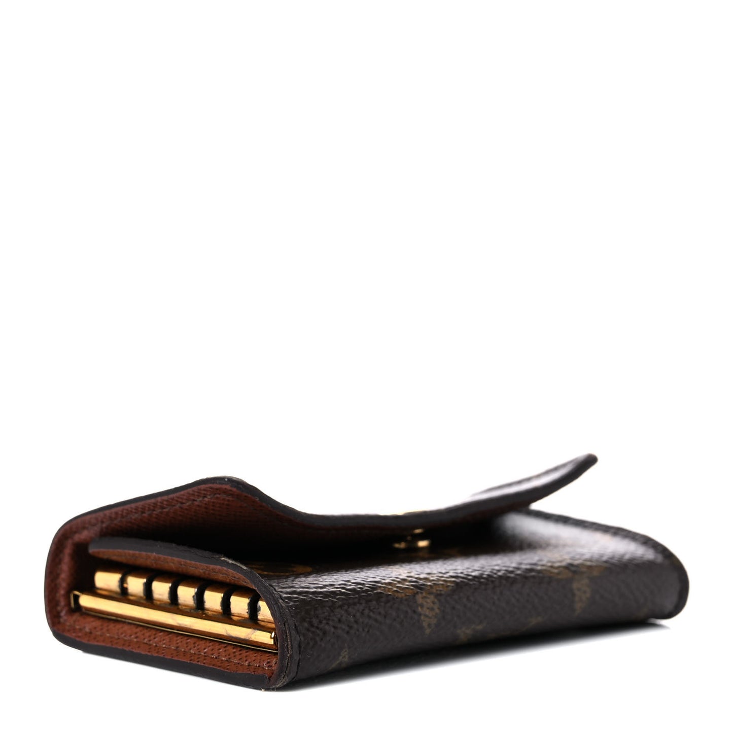 This is an authentic LOUIS VUITTON Monogram 6 Key Multicles Holder. This stylish key holder is crafted of Louis Vuitton monogram coated canvas. The flap opens with a brass snap to a terra cotta cross-grain leather interior with six brass key rings.