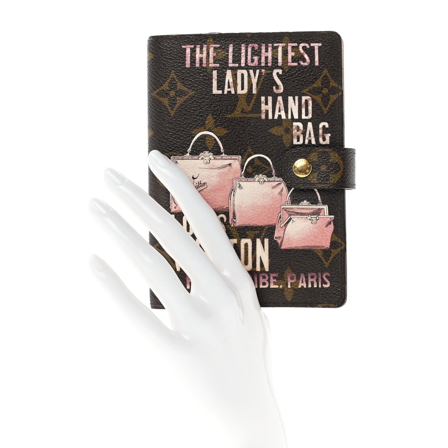 This is an authentic LOUIS VUITTON Monogram Affiche Agenda PM. This chic agenda cover is finely crafted of classic Louis Vuitton monogram toile canvas with an illustration of a classic Louis Vuitton advertisement. The agenda opens with a strap to a pink cross-grain leather interior with card slots and patch pockets and gold rings.Follow this item for alerts. Louis Vuitton is a registered trademark of Louis Vuitton. FASHIONPHILE is not affiliated with Louis Vuitton.