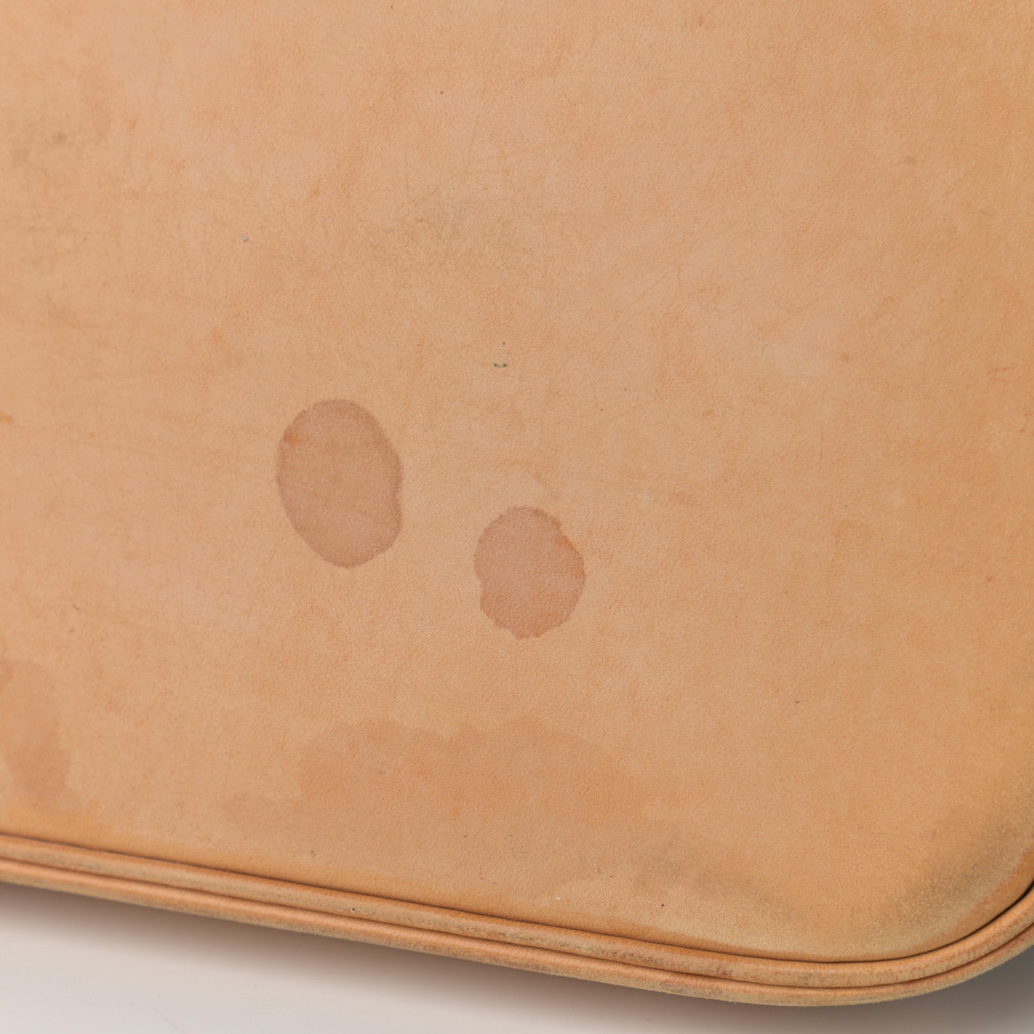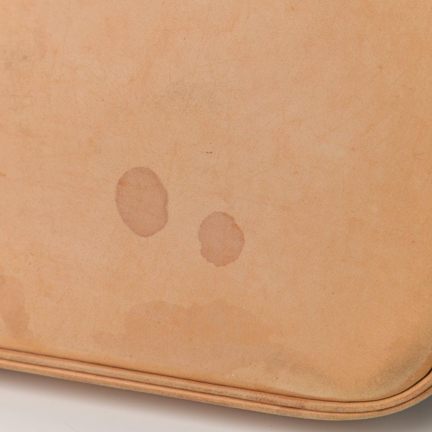 Exterior: Corner wear, creases, scuffs, structure wear, patina of vachetta, edge wear, liquid marks