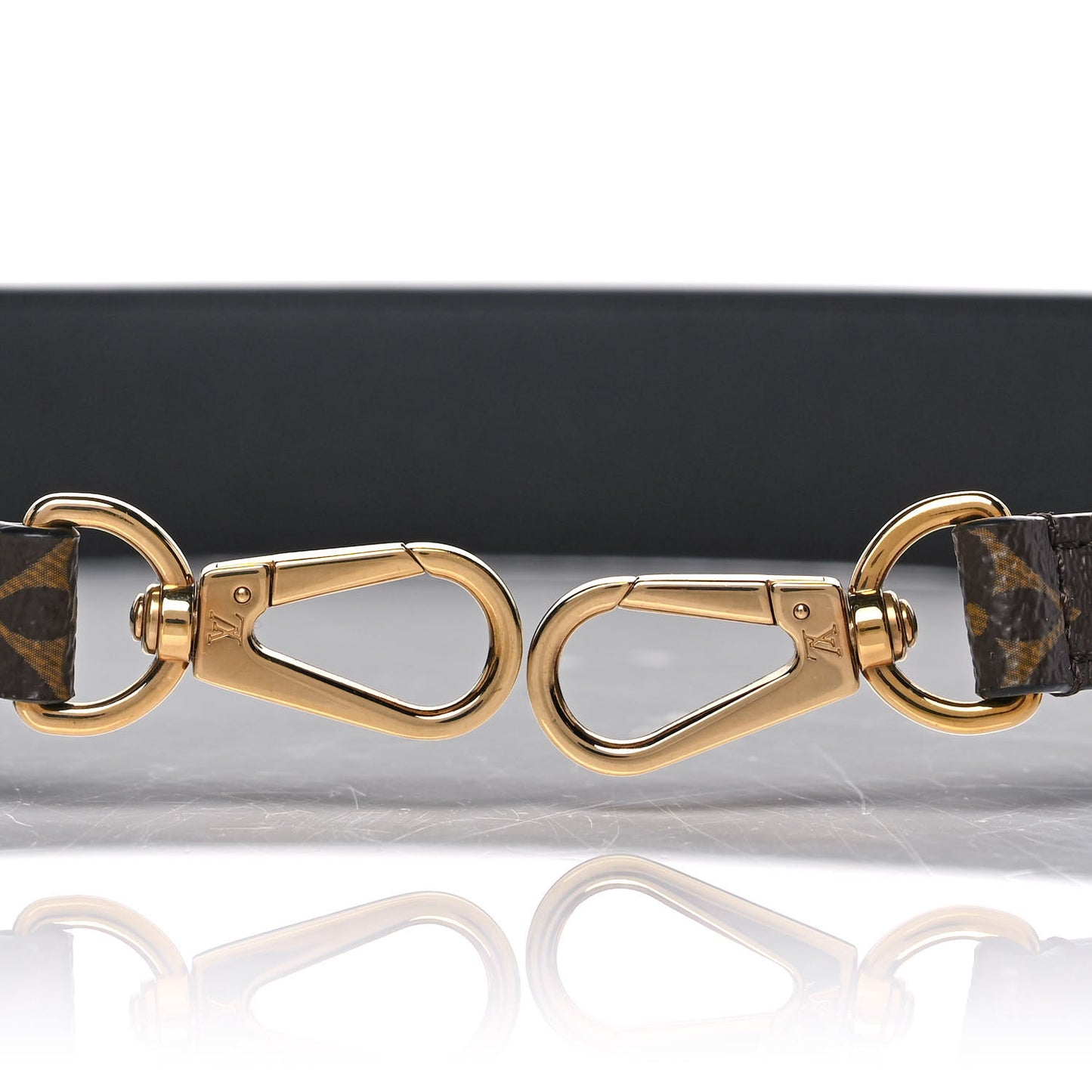 This is an authentic LOUIS VUITTON Monogram Bandouliere Shoulder Strap in Black This strap is crafted of sturdy LV monogram coated canvas. The strap has a brass D-rings on each end for versatility for your Louis Vuitton handbag.Follow this item for alerts. Louis Vuitton is a registered trademark of Louis Vuitton. FASHIONPHILE is not affiliated with Louis Vuitton.