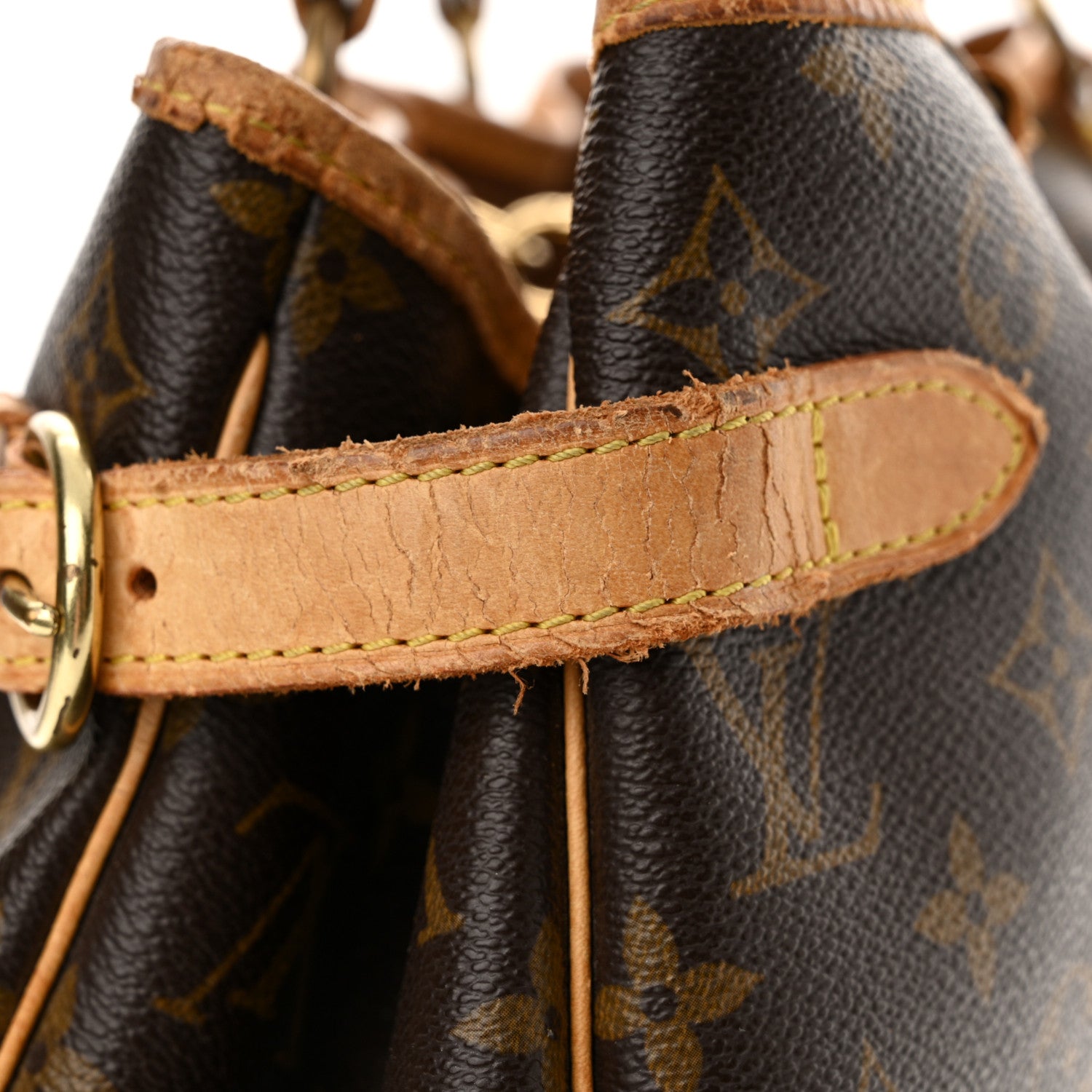 Exterior: Corner wear, structure wear, patina of vachetta, edge wear, indentations, liquid marks, frayed stitch(es), splitting