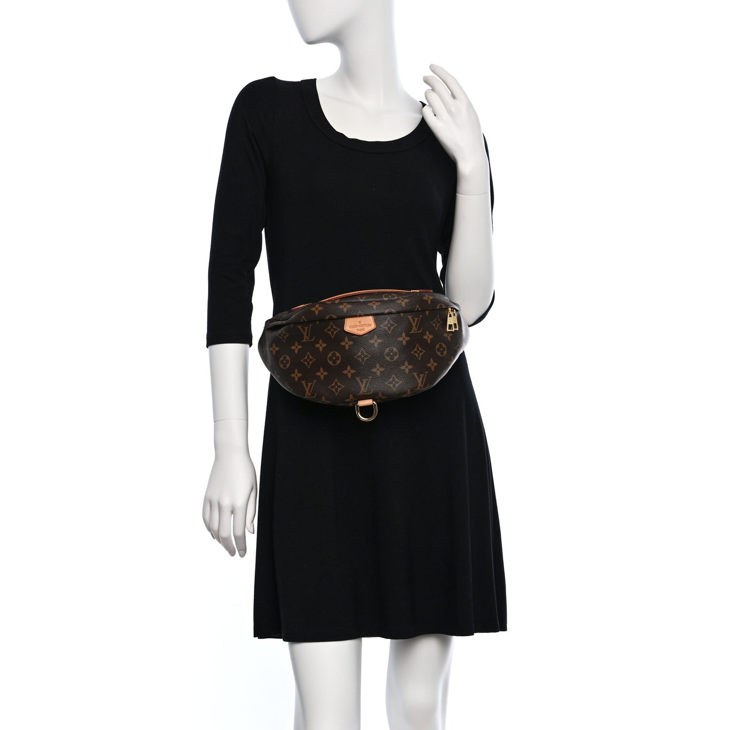 This is an authentic LOUIS VUITTON Monogram Bumbag. This stylish waist bag is created of traditional Louis Vuitton monogram on toile canvas. The bag features a vachetta cowhide leather top handle, an adjustable waist strap, and a rear zipper pocket. The main zippers open to a spacious black fabric interior.