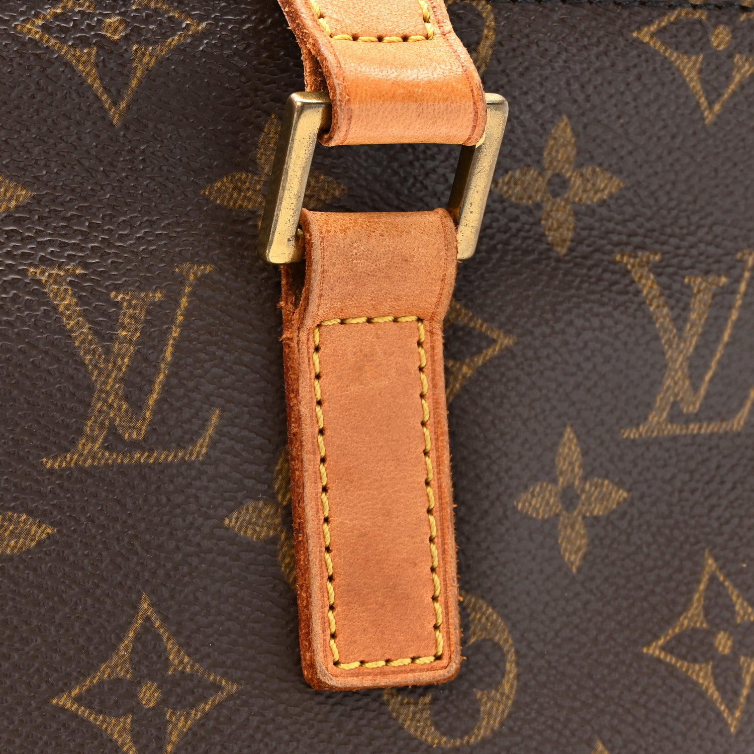 This is an authentic LOUIS VUITTON Monogram Cabas Piano. This stylish tote is crafted of classic Louis Vuitton monogram-coated canvas with vachetta leather shoulder straps, a matching base and polished gold hardware. The top zipper opens the bag to a cocoa brown fabric interior with zipper and pocket.Follow this item for alerts. Louis Vuitton is a registered trademark of Louis Vuitton. FASHIONPHILE is not affiliated with Louis Vuitton.