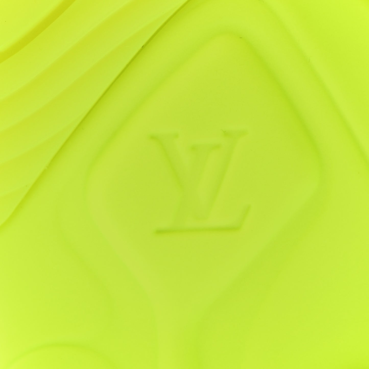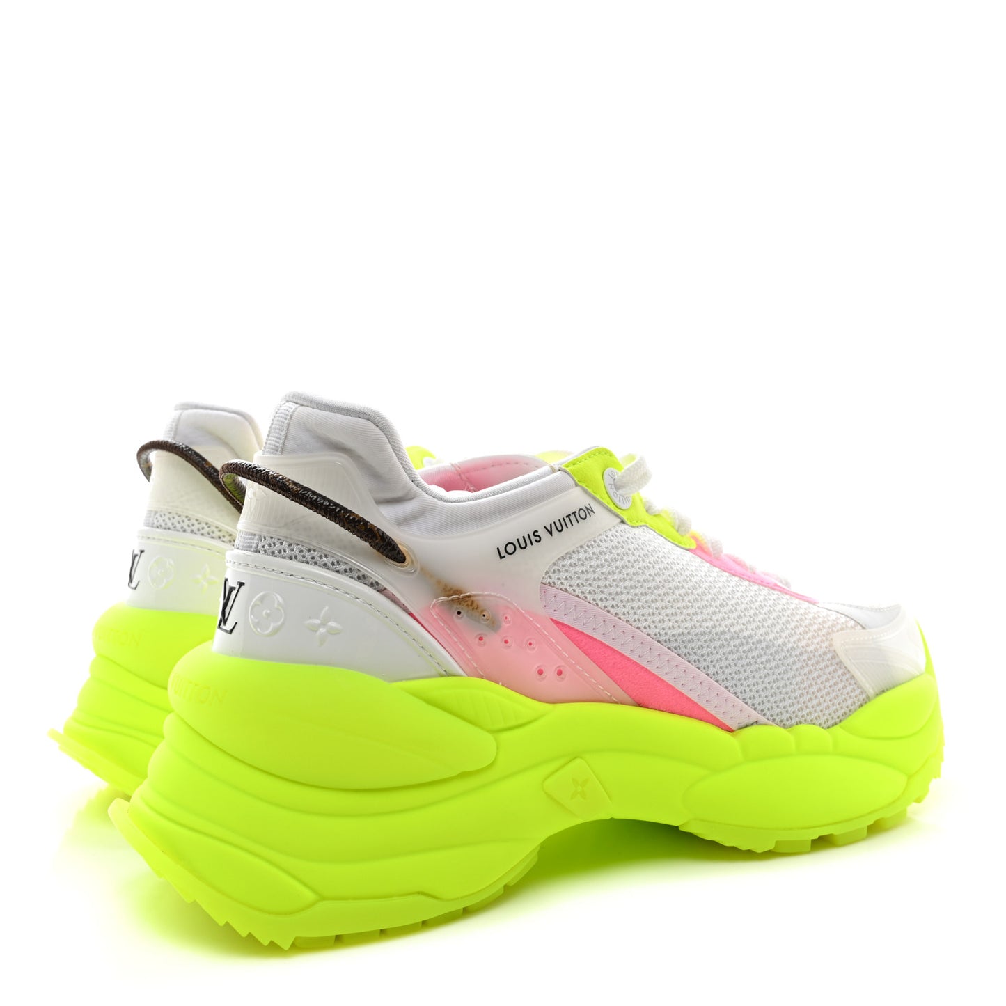 This is an authentic pair of LOUIS VUITTON Monogram Calfskin Run 55 Sneakers size 37 in Yellow. These stylish sneakers are crafted of mesh fabric, rubber, and monogram accents. These shoes have white laces and neon yellow rubber soles.Follow this item for alerts. Louis Vuitton is a registered trademark of Louis Vuitton. FASHIONPHILE is not affiliated with Louis Vuitton.