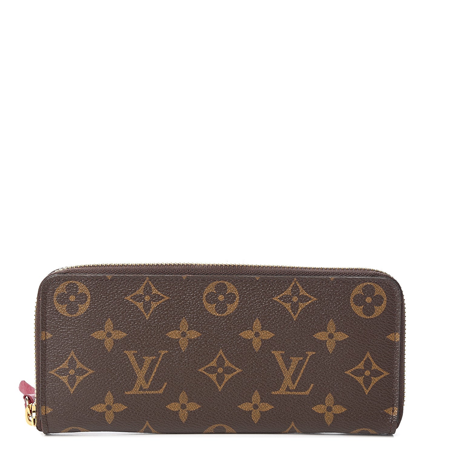 This is an authentic LOUIS VUITTON Monogram Clemence Wallet in Fuchsia. This wallet is crafted of traditional monogram coated canvas. A brass wrap-around zipper opens the wallet to a partitioned pink cross-grain leather interior with card slots, bill pockets, and a central zipper compartment. This is an excellent wallet for everyday practicality, with the luxury and style of Louis Vuitton!Follow this item for alerts. Louis Vuitton is a registered trademark of Louis Vuitton. FASHIONPHILE is not affiliated with Louis Vuitton.