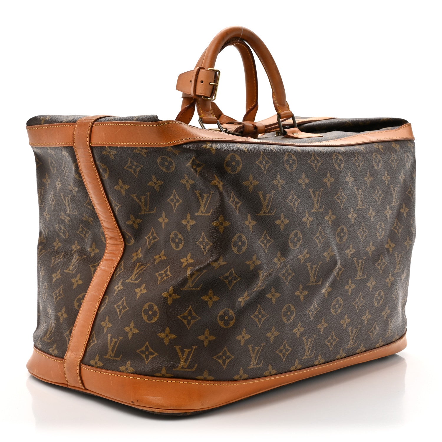 This is an authentic LOUIS VUITTON Monogram Cruiser 45. This stylish bag is crafted of classic Louis Vuitton monogram on toile canvas. The bag features vachetta cowhide leather trim and rolled top handles with polished brass hardware. The bag opens with a belt buckle, and polished brass zippers to a cocoa brown fabric interior with a hanging patch pocket.Follow this item for alerts. Louis Vuitton is a registered trademark of Louis Vuitton. FASHIONPHILE is not affiliated with Louis Vuitton.