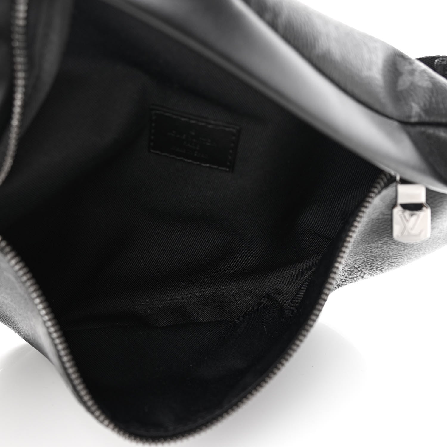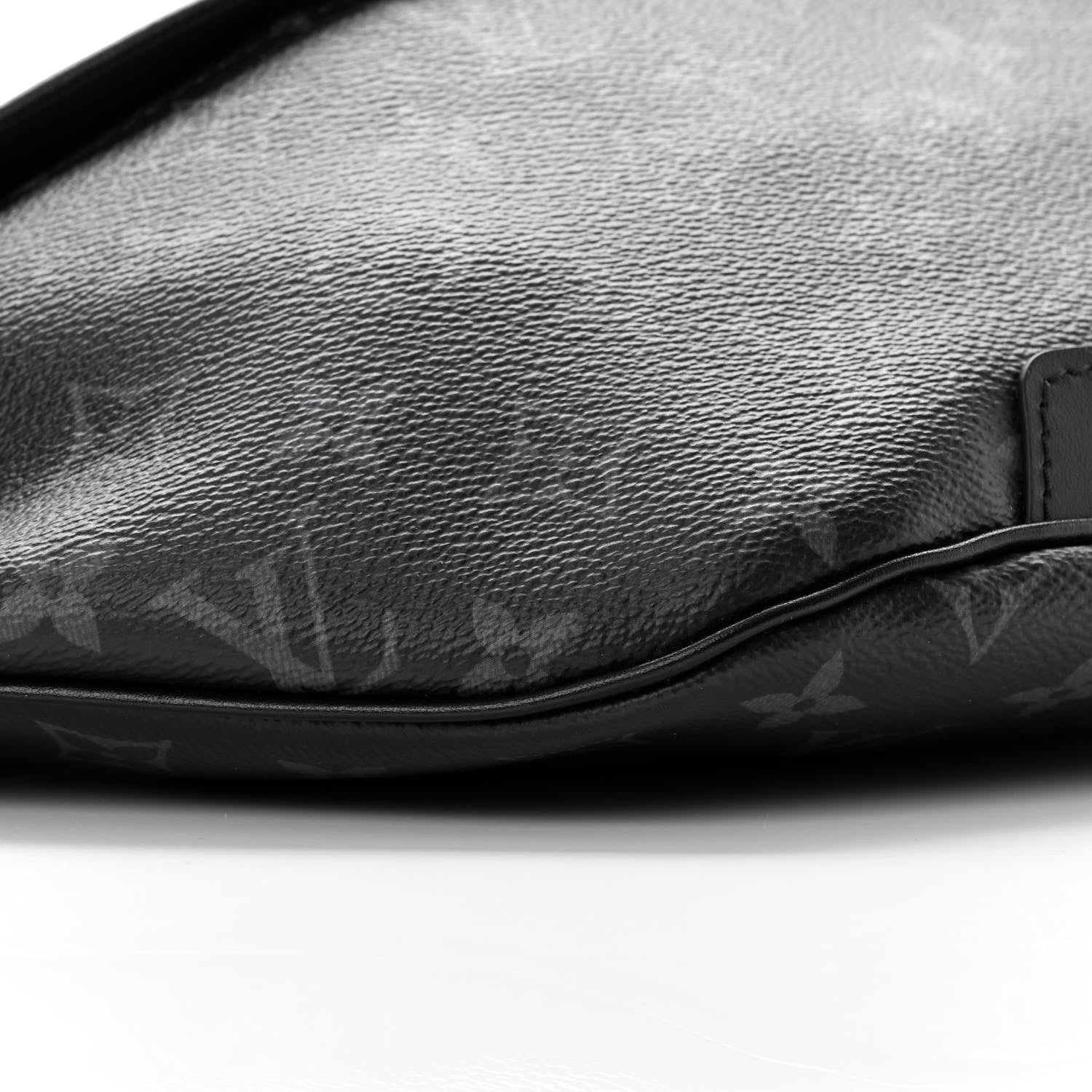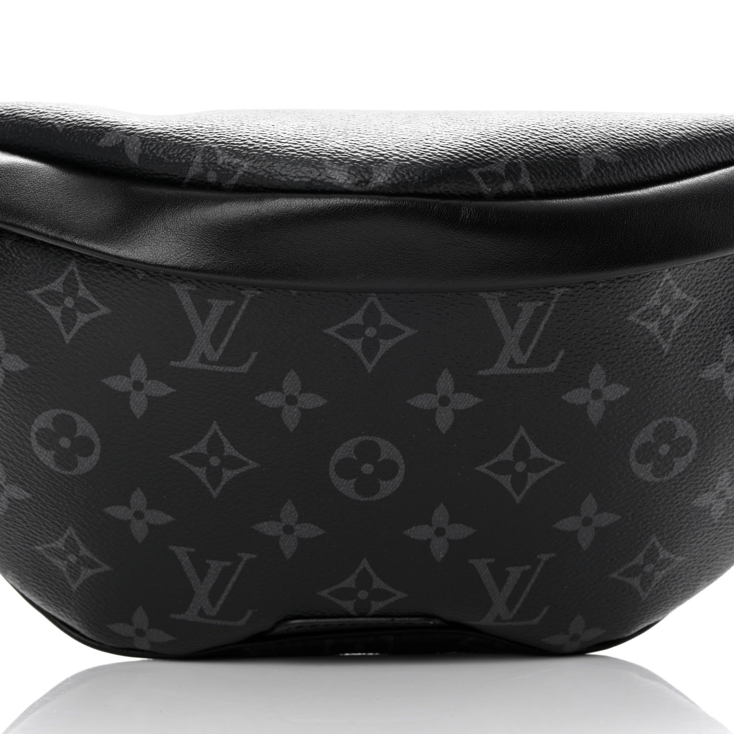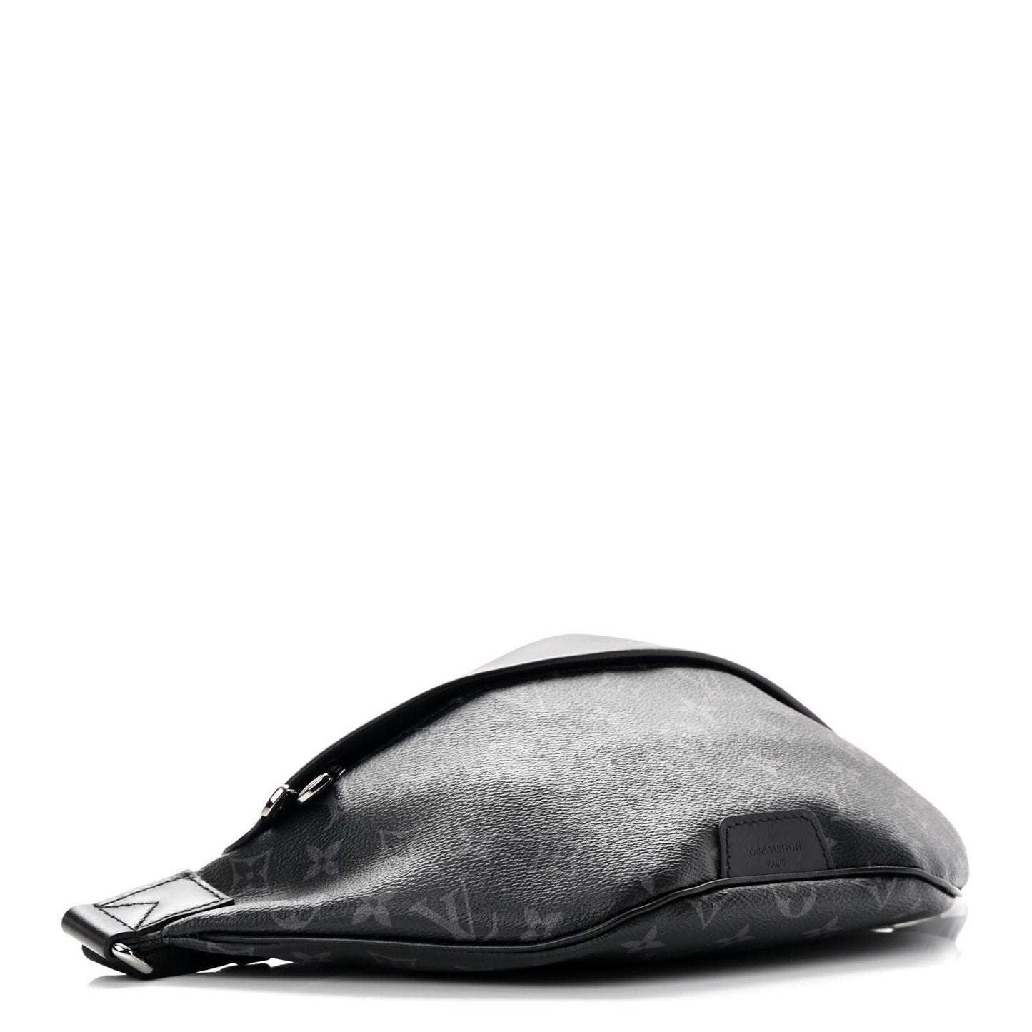This is an authentic LOUIS VUITTON Monogram Eclipse Discovery Bumbag. This stylish belt bag is crafted of Louis Vuitton monogram toile canvas in graphite, with black leather trim. The bag features an adjustable black leather belt strap with polished dark silver hardware and a rear zipper pocket. The top zippers open to a black fabric interior.Follow this item for alerts. Louis Vuitton is a registered trademark of Louis Vuitton. FASHIONPHILE is not affiliated with Louis Vuitton.