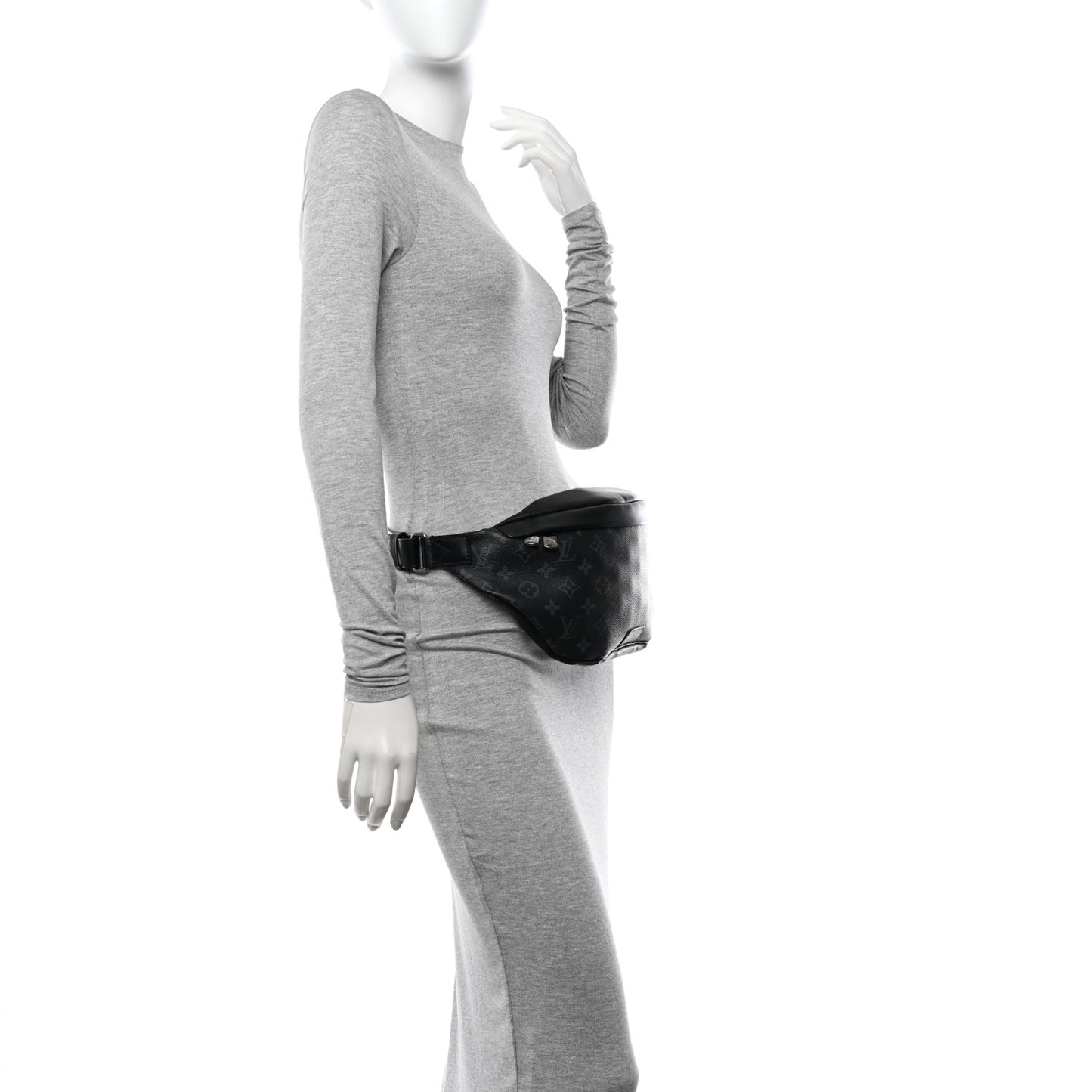 This is an authentic LOUIS VUITTON Monogram Eclipse Discovery Bumbag PM. This stylish belt bag is crafted of Louis Vuitton monogram toile canvas in graphite, with black leather trim. The bag features an adjustable black canvas belt strap with polished dark silver hardware and a zipper pocket on the back. The top zippers open to a black fabric interior.Follow this item for alerts. Louis Vuitton is a registered trademark of Louis Vuitton. FASHIONPHILE is not affiliated with Louis Vuitton.