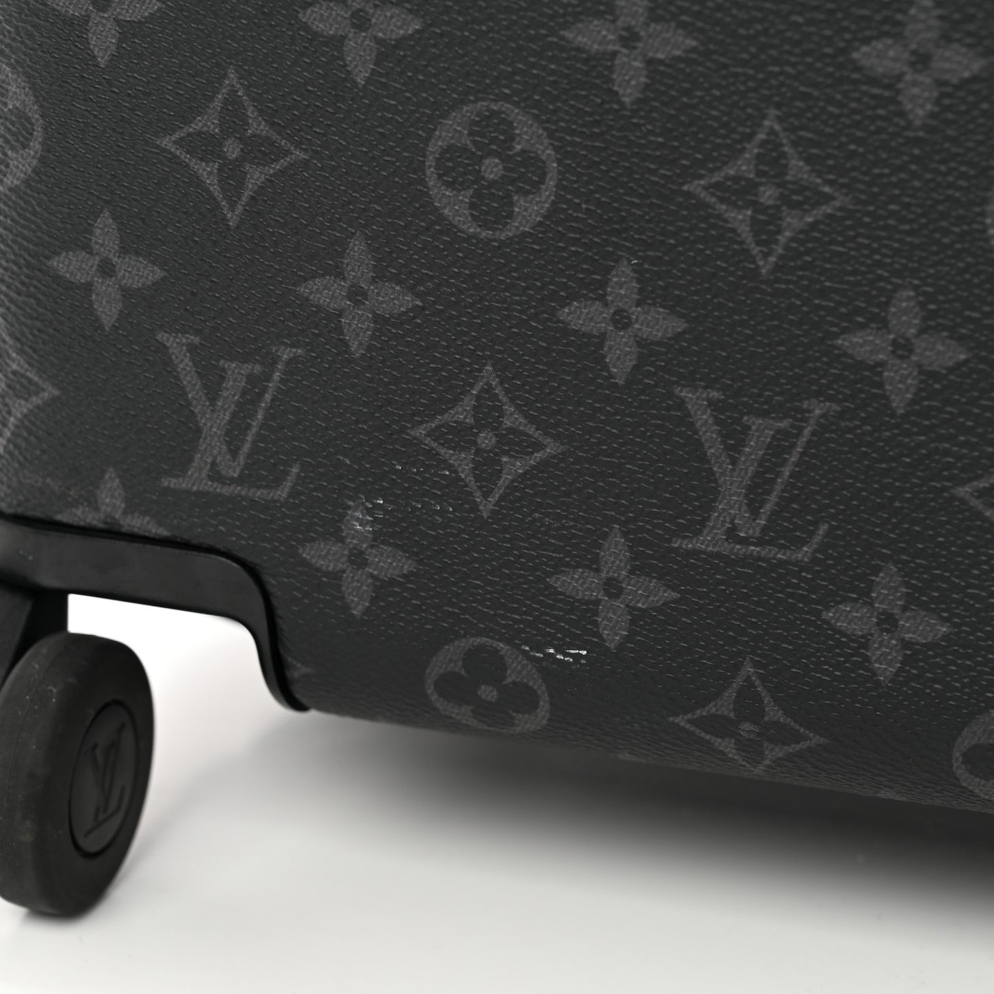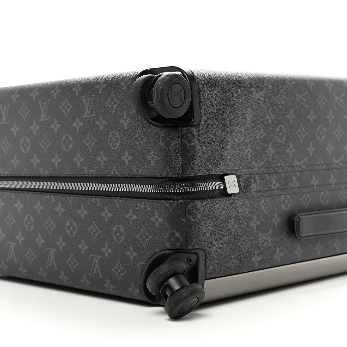 This is an authentic LOUIS VUITTON Monogram Eclipse Horizon 70. This stylish hard suitcase is crafted of Louis Vuitton monogram on toile canvas, a black leather top handle, and state-of-the-art pull and roller mechanisms with matte silver hardware. The case opens to black nylon compartments with large zipper pockets.Follow this item for alerts. Louis Vuitton is a registered trademark of Louis Vuitton. FASHIONPHILE is not affiliated with Louis Vuitton.