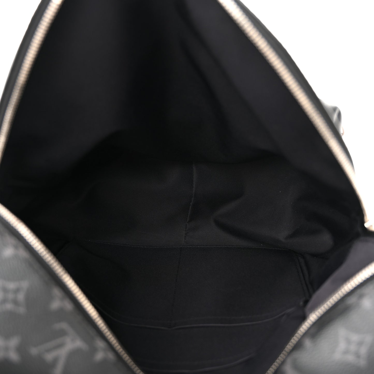 This is the authentic LOUIS VUITTON Monogram Eclipse Taiga Discovery Backpack PM. This backpack is crafted of monogram canvas in grey and black. This shoulder bag features adjustable shoulder straps, a handle, a zip-around top closure, a zip front pocket, and silver hardware. The top zipper opens to a black fabric interior with patch pockets.Follow this item for alerts. Louis Vuitton is a registered trademark of Louis Vuitton. FASHIONPHILE is not affiliated with Louis Vuitton.