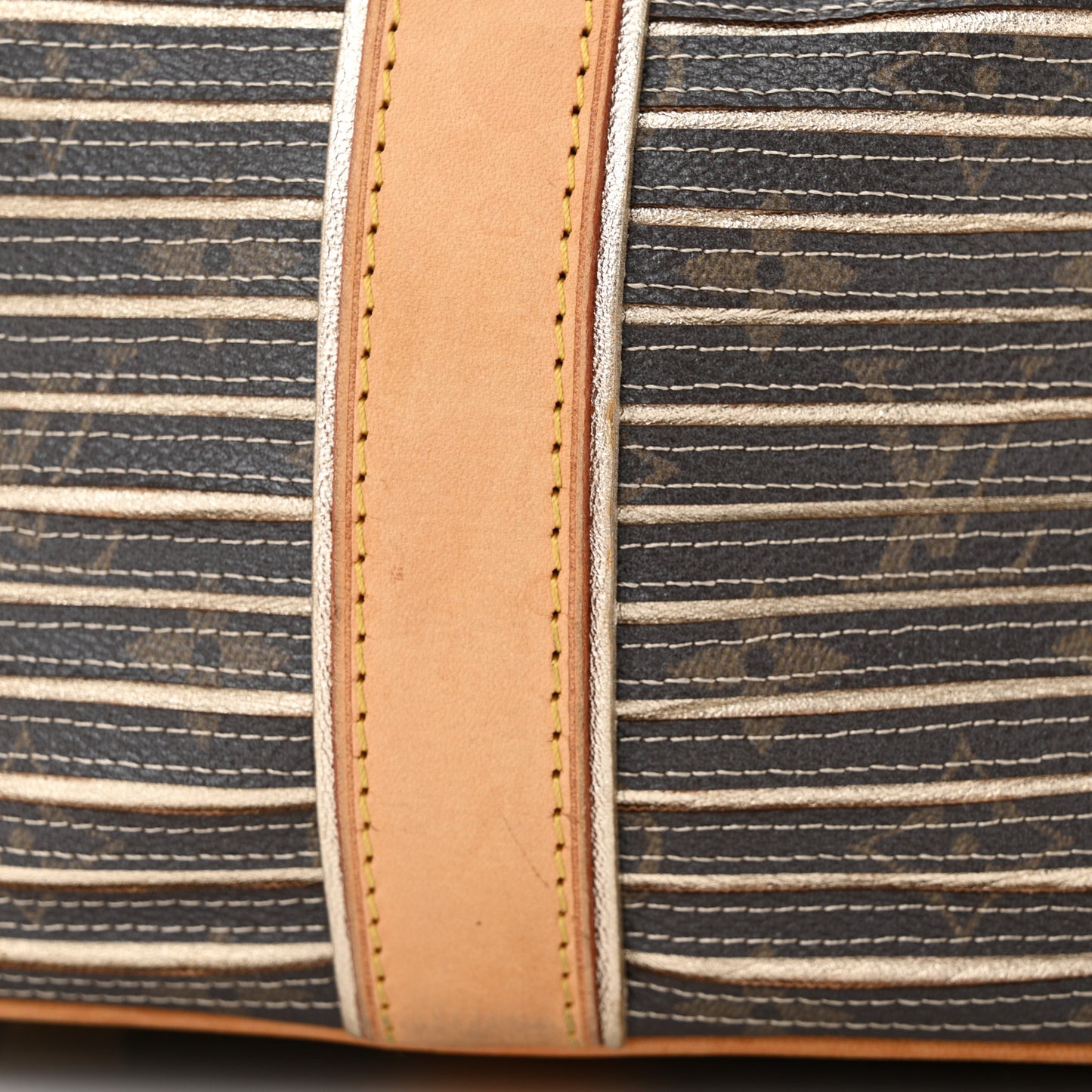This is an authentic LOUIS VUITTON Monogram Eden Neo in Argent. This bag has a simple yet sophisticated bucket shape constructed of a limited edition Louis Vuitton striped monogram metallic canvas. The bag has durable vachetta cowhide leather trim at the sides and base, smooth rolled leather handles and an optional shoulder strap. This shoulder bag also features brass hardware including handle rings, eyelets and feet for the base. The top opens to a cream microfiber interior with a pocket.Follow this item for alerts. Louis Vuitton is a registered trademark of Louis Vuitton. FASHIONPHILE is not affiliated with Louis Vuitton.