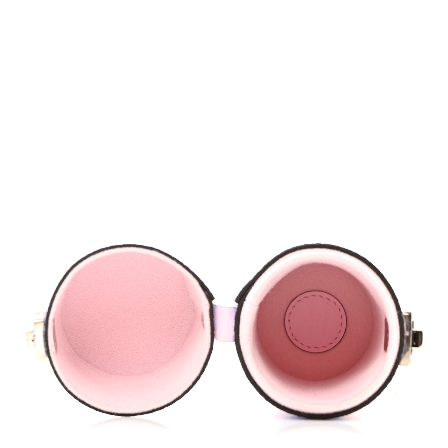 This is an authentic LOUIS VUITTON Monogram Escale 100ML Travel Case. It is constructed of white Louis Vuitton monogram on a light pink and multicolor coated canvas with a silver lock closure. The compartment is round and has room to carry a perfume bottle.