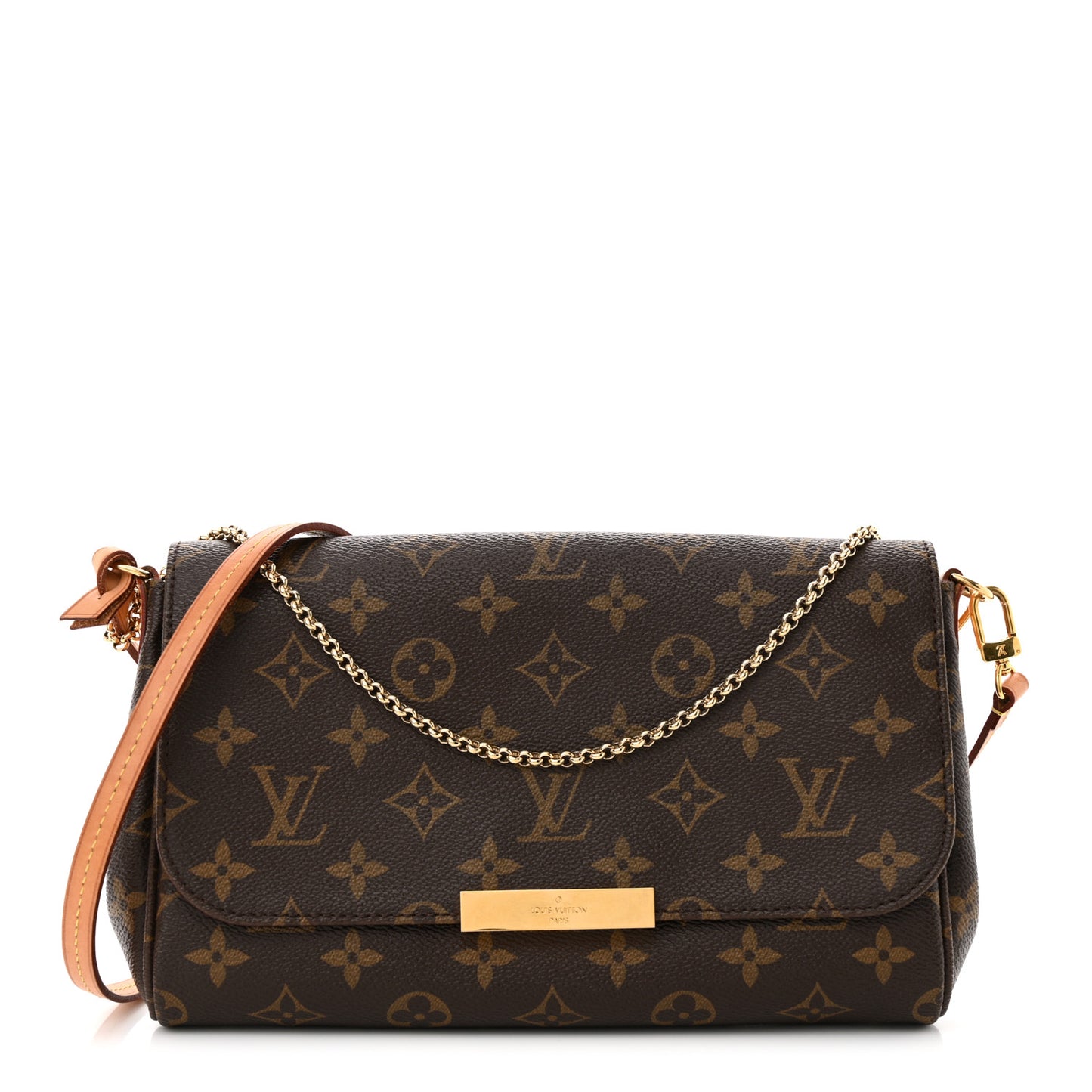 This is an authentic LOUIS VUITTON Monogram Favorite MM. This stylish shoulder bag is crafted of monogram coated canvas in brown. The bag features a polished gold chain strap and polished gold hardware. The front flap opens with a magnetic gold bar to a burgundy fabric interior with a flat pocket.Follow this item for alerts. Louis Vuitton is a registered trademark of Louis Vuitton. FASHIONPHILE is not affiliated with Louis Vuitton.