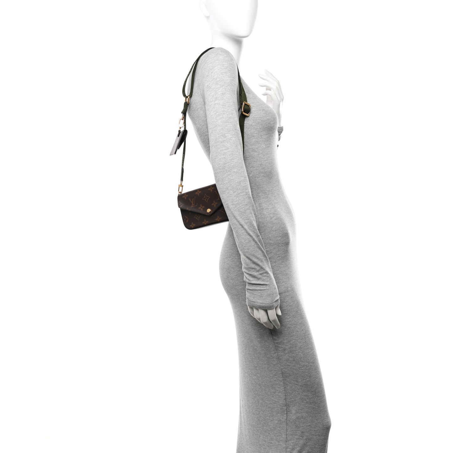 This is an authentic LOUIS VUITTON Monogram Felicie Strap & Go in Kaki. This chic crossbody bag is crafted of monogram-coated canvas. The bag features a removable green canvas strap, a coin pouch, and gold hardware. The front flap opens to a green fabric interior with card slots and a patch pocket.Follow this item for alerts. Louis Vuitton is a registered trademark of Louis Vuitton. FASHIONPHILE is not affiliated with Louis Vuitton.