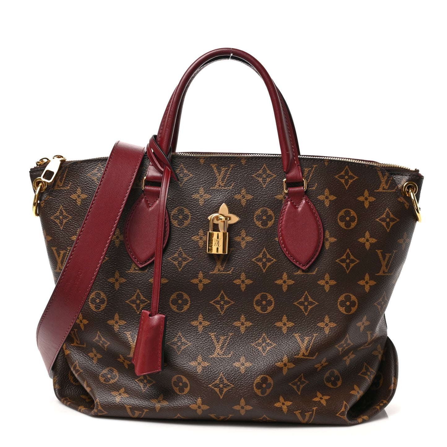 This is an authentic LOUIS VUITTON Monogram Flower Zipped Tote MM in Bordeaux. This chic tote is finely crafted of classic Louis Vuitton monogram coated canvas. The bag features burgundy leather top handles, a removable shoulder strap, and a polished brass facing turn lock with a flower detail. The top is open to a partitioned burgundy microfiber interior with flat pockets and a central zipper compartment with patch pockets.Follow this item for alerts. Louis Vuitton is a registered trademark of Louis Vuitton. FASHIONPHILE is not affiliated with Louis Vuitton.