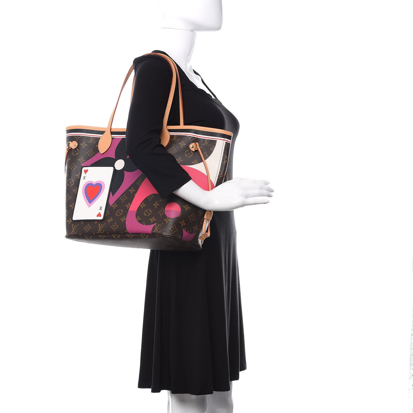 This is an authentic LOUIS VUITTON Monogram Game On Neverfull MM. This stylish tote is part of Louis Vuitton Cruise 2021 Collection which plays with Louis Vuitton’s iconic motif, mingling Monogram flowers with the four suits of a deck of cards. The bag features vachetta cowhide leather shoulder straps, trim and side cinch cords, with polished brass hardware. The wide top is open to a striped beige fabric interior with a hanging zipper pocket. This popular tote is ideal for all of your everyday essentials, with the luxury and style of Louis Vuitton!Follow this item for alerts. Louis Vuitton is a registered trademark of Louis Vuitton. FASHIONPHILE is not affiliated with Louis Vuitton.