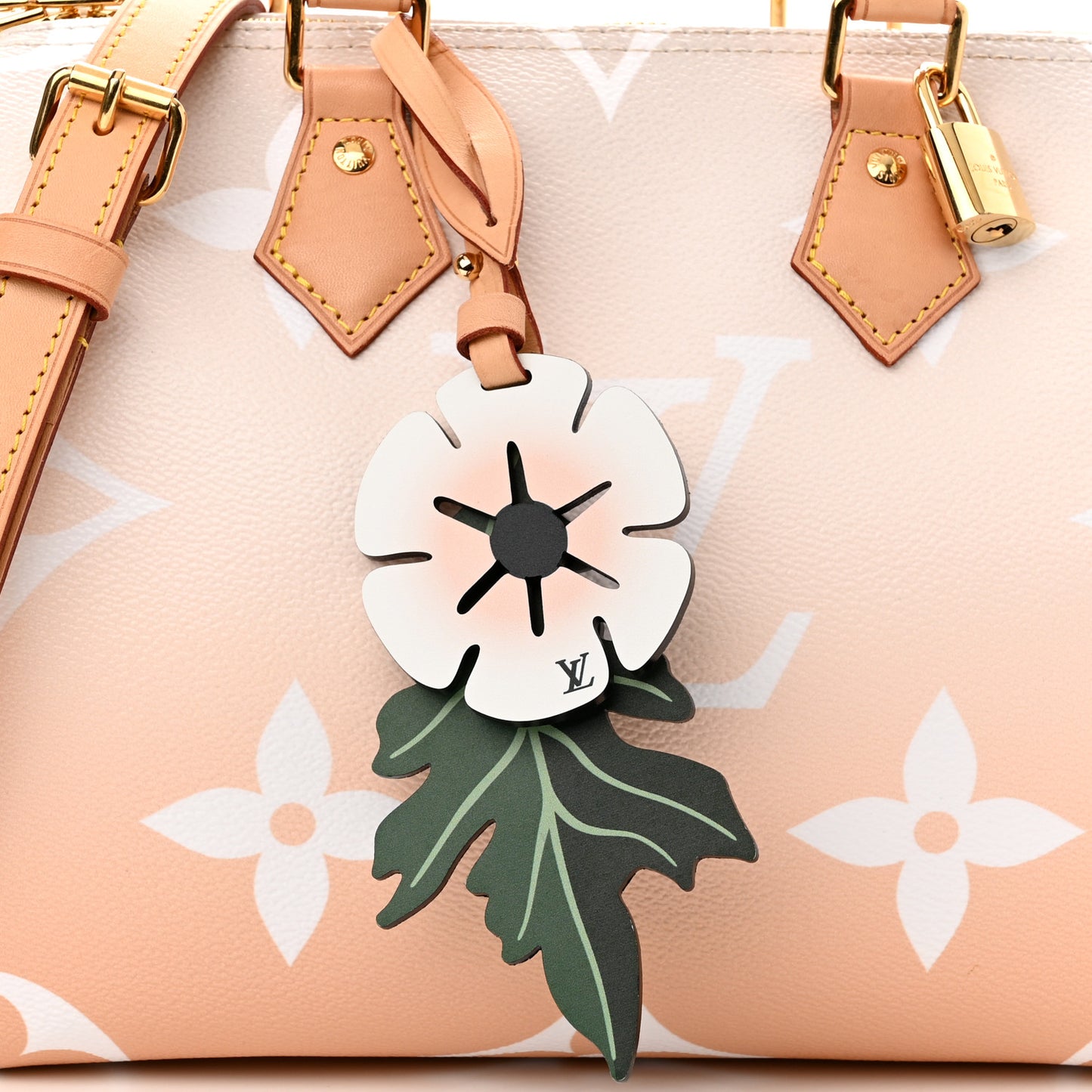 This is an authentic LOUIS VUITTON Monogram Giant By The Pool Speedy Bandouliere 25 in Brume. This pre-owned luxury bowler bag is part of the Louis Vuitton Summer 2021 “By The Pool” collection. This seasonal Speedy shoulder bag is crafted of monogram giant canvas with peach-colored degrade effect with oversized white monogram print. It features vachetta leather trim and handles, an optional shoulder strap, and brass hardware. Included is an oversized leather flower charm to finish the tropical look. The top opens with a zipper to a beige striped fabric interior with a zipper pocket.Follow this item for alerts. Louis Vuitton is a registered trademark of Louis Vuitton. FASHIONPHILE is not affiliated with Louis Vuitton.