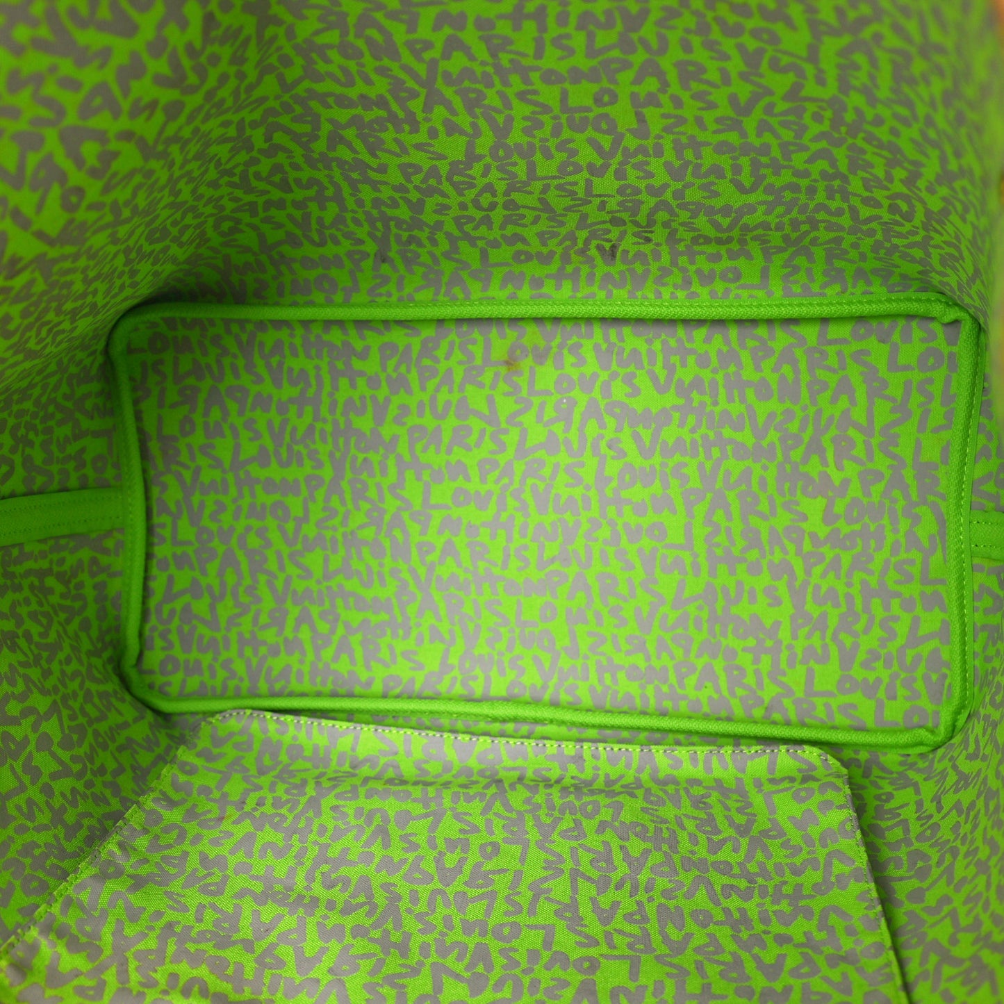 This is an authentic LOUIS VUITTON Monogram Graffiti Neverfull GM in Green. This limited edition tote, in the largest size of the line, is crafted of classic Louis Vuitton monogram toile canvas printed with the Stephen Sprouse graffiti pattern in lime green. This bag features vachetta cowhide leather handles, side cinch cords, and top trim with brass hardware. The top opens to a grey and green graffiti logo fabric interior with a hanging zipper pocket.Follow this item for alerts. Louis Vuitton is a registered trademark of Louis Vuitton. FASHIONPHILE is not affiliated with Louis Vuitton.
