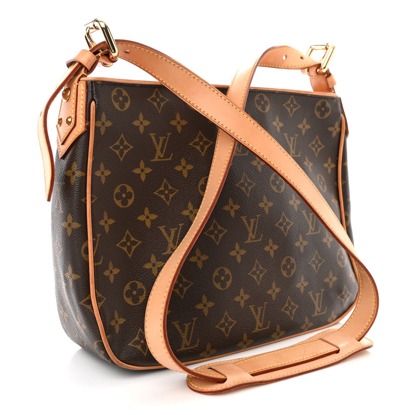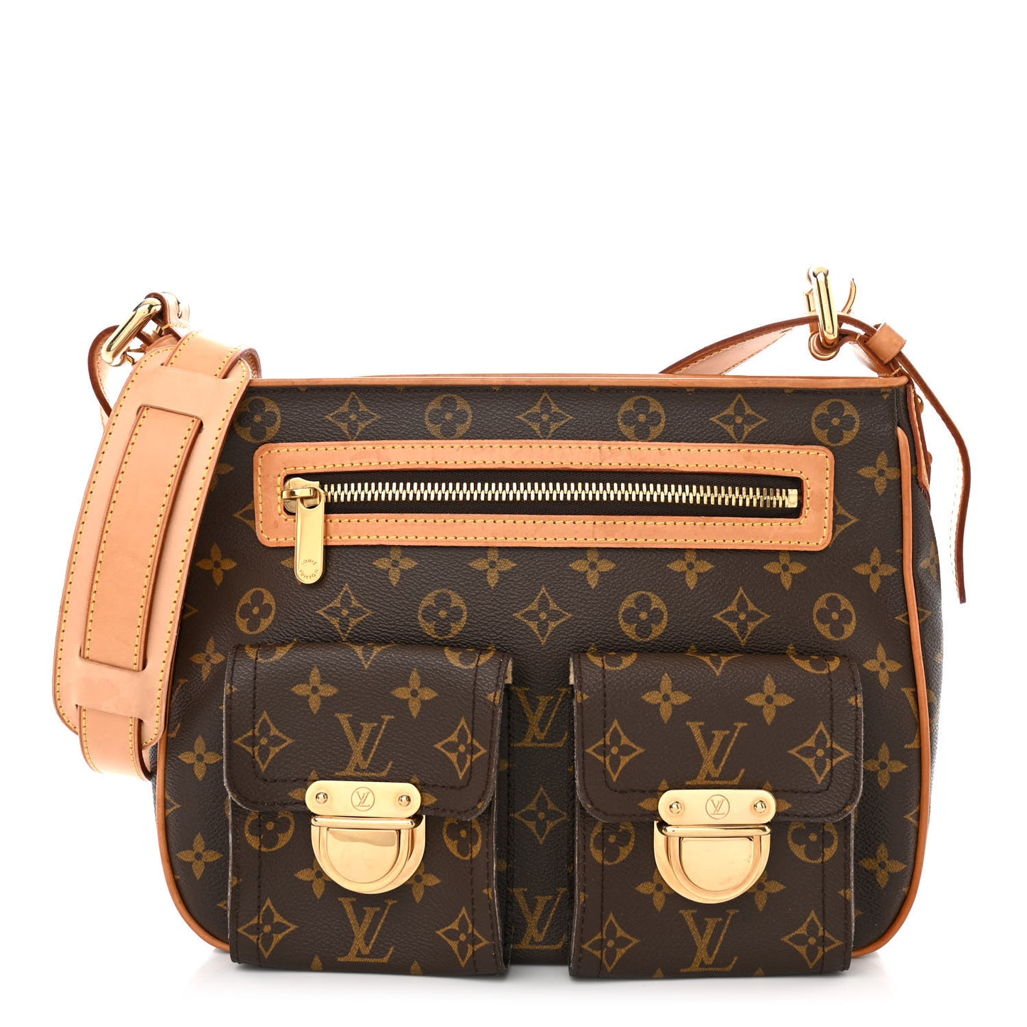 This is an authentic LOUIS VUITTON Monogram Hudson GM. This stylish shoulder bag is crafted of traditional Louis Vuitton monogram coated canvas. It features vachetta cowhide leather trim and adjustable vachetta shoulder straps, an exterior zipper compartment and two flap pockets with gold tone press locks. The top zipper opens to a beige microfiber interior with patch pockets.