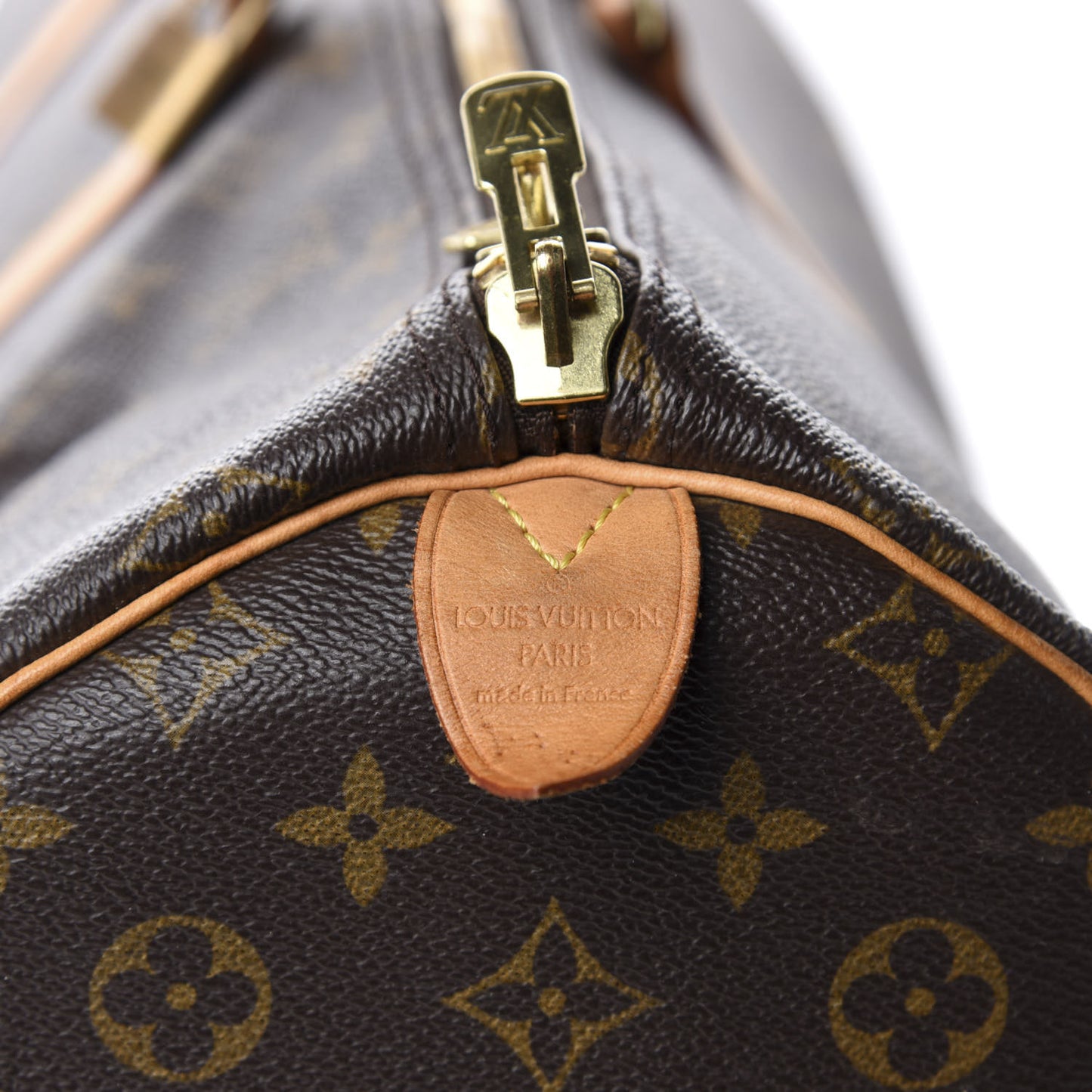 Handle: Edge wear, scuffs, patina of vachetta, liquid marks