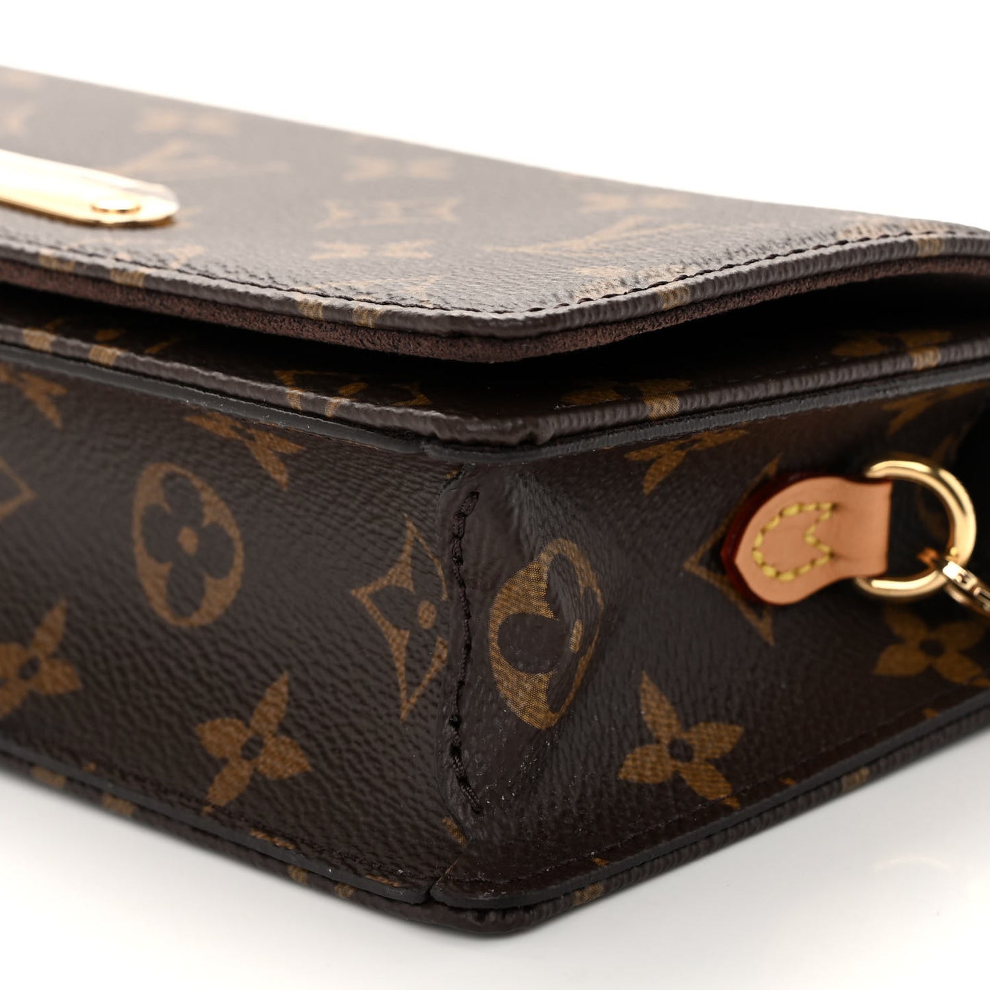 This is an authentic LOUIS VUITTON Monogram Lily Wallet On Chain. This compact wallet is crafted of Louis Vuitton monogram coated canvas in brown. The bag features an optional, an adjustable removable chain strap with an LV logo pendant, and gold hardware. This opens to a brown microfiber interior with a leather patch pocket and card slots.Follow this item for alerts. Louis Vuitton is a registered trademark of Louis Vuitton. FASHIONPHILE is not affiliated with Louis Vuitton.