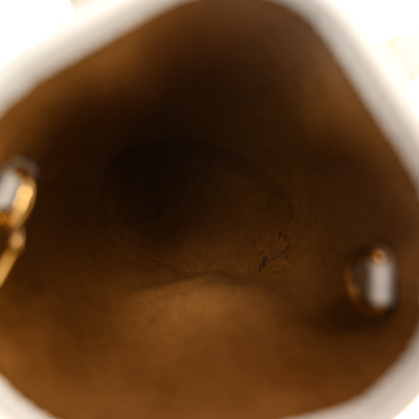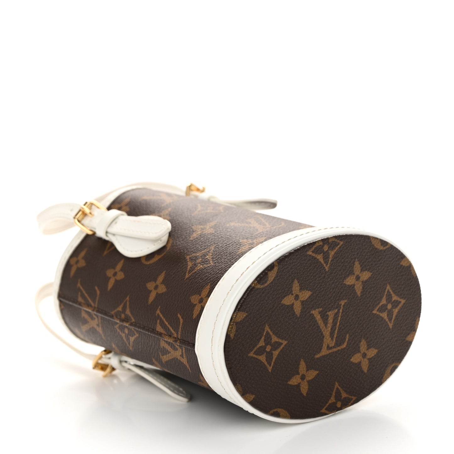 This is an authentic LOUIS VUITTON Monogram LV Match Nano Bucket Bag in White. This stylish bag is crafted of Louis Vuitton signature monogram coated canvas in brown. This bag features white leather trim, matching top handles, adjustable shoulder strap with gold hardware. The open top leads to a brown suede leather interior with a matching pochette.Follow this item for alerts. Louis Vuitton is a registered trademark of Louis Vuitton. FASHIONPHILE is not affiliated with Louis Vuitton.