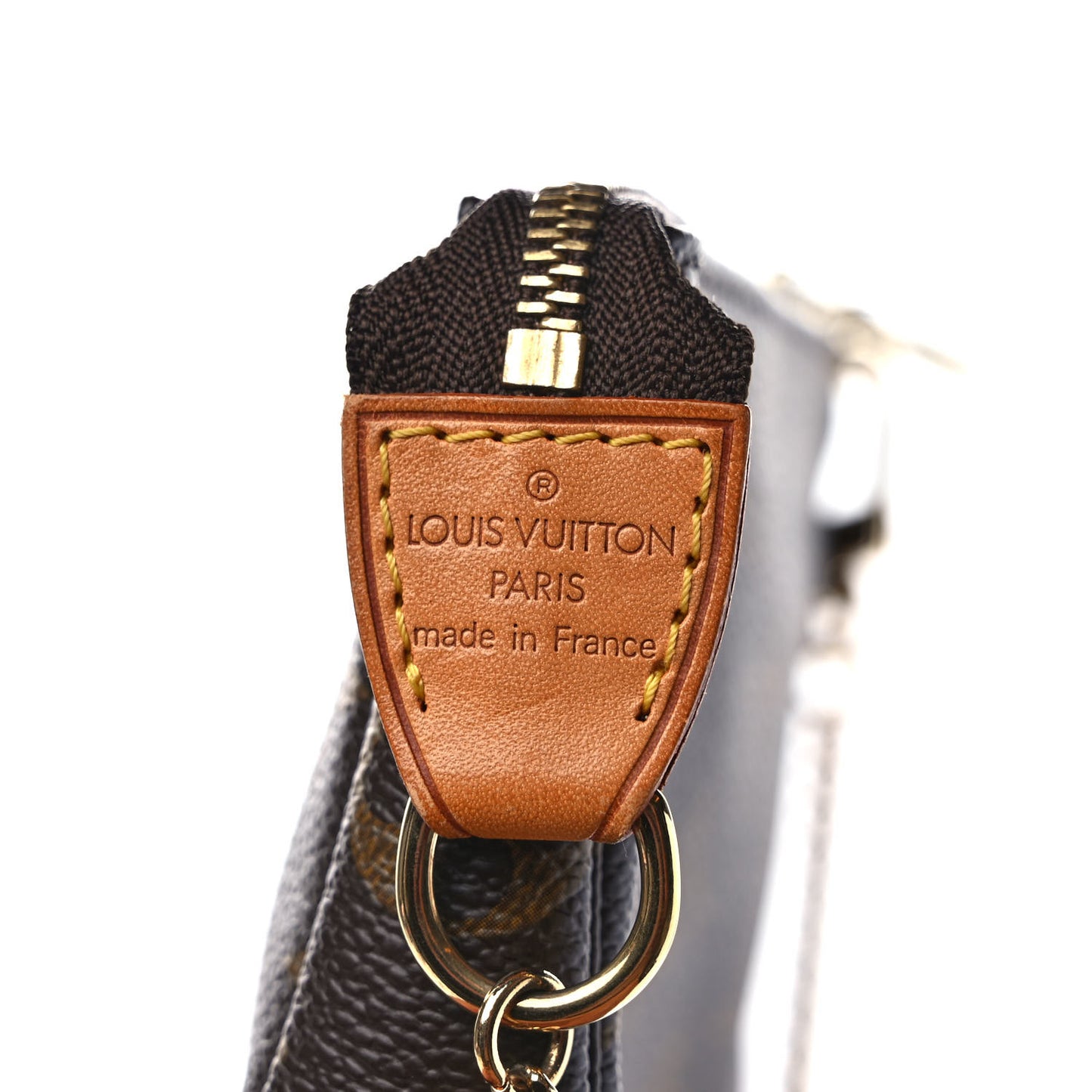 This is an authentic LOUIS VUITTON Monogram Mini Pochette Accessories. This pochette is crafted of classic Louis Vuitton monogram on coated canvas. The pochette features a gold chain strap and a gold top zipper that opens to a cocoa brown fabric interior.Follow this item for alerts. Louis Vuitton is a registered trademark of Louis Vuitton. FASHIONPHILE is not affiliated with Louis Vuitton.