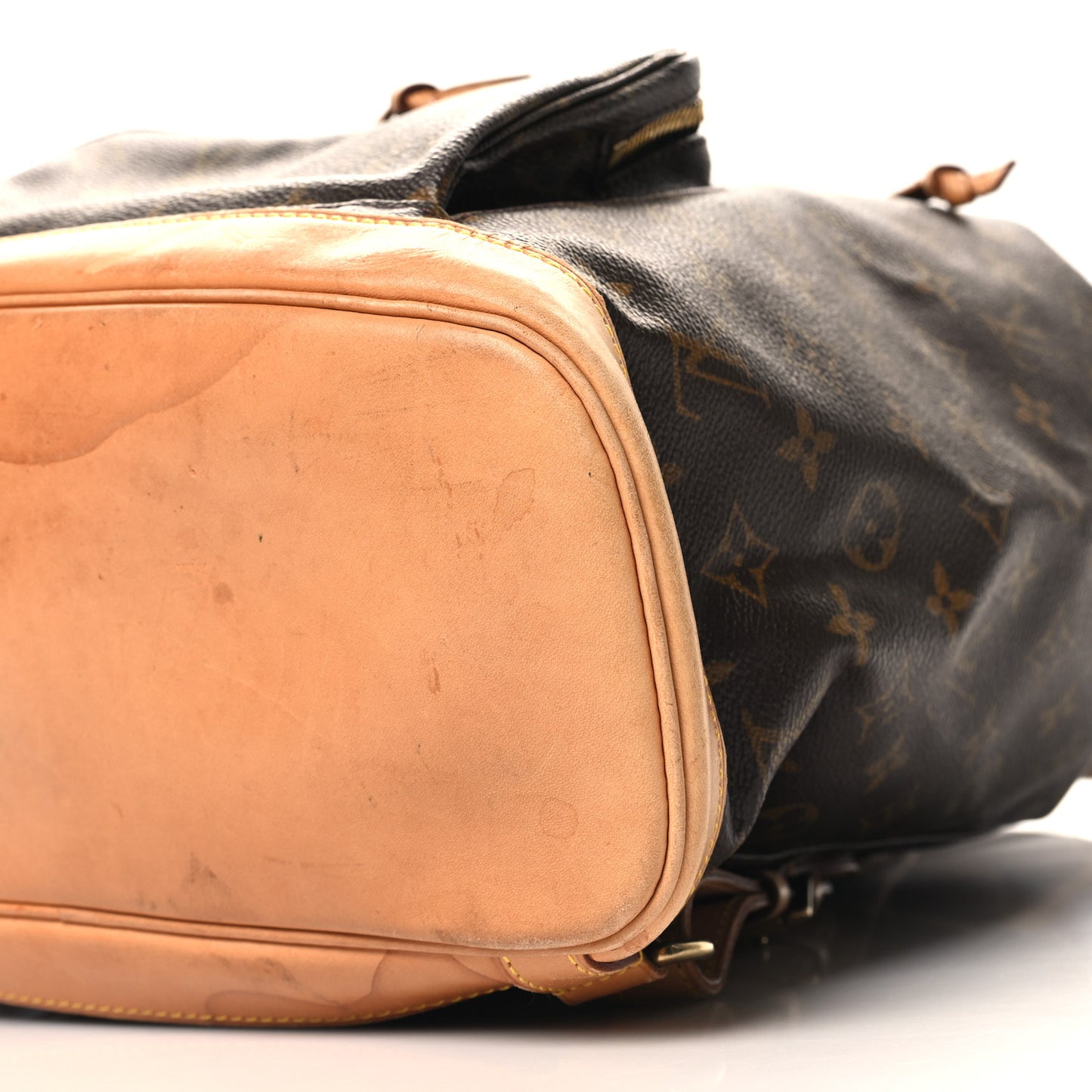 This is the authentic LOUIS VUITTON Monogram Montsouris GM Backpack. This backpack is crafted of monogram coated canvas with vachetta trim including shoulder straps, base, and a cinch cord. The bag also features brass hardware, an exterior zipper pocket and a flap with a belt closure. The top opens to a cocoa brown fabric interior with a patch pocket and a D ring.Follow this item for alerts. Louis Vuitton is a registered trademark of Louis Vuitton. FASHIONPHILE is not affiliated with Louis Vuitton.