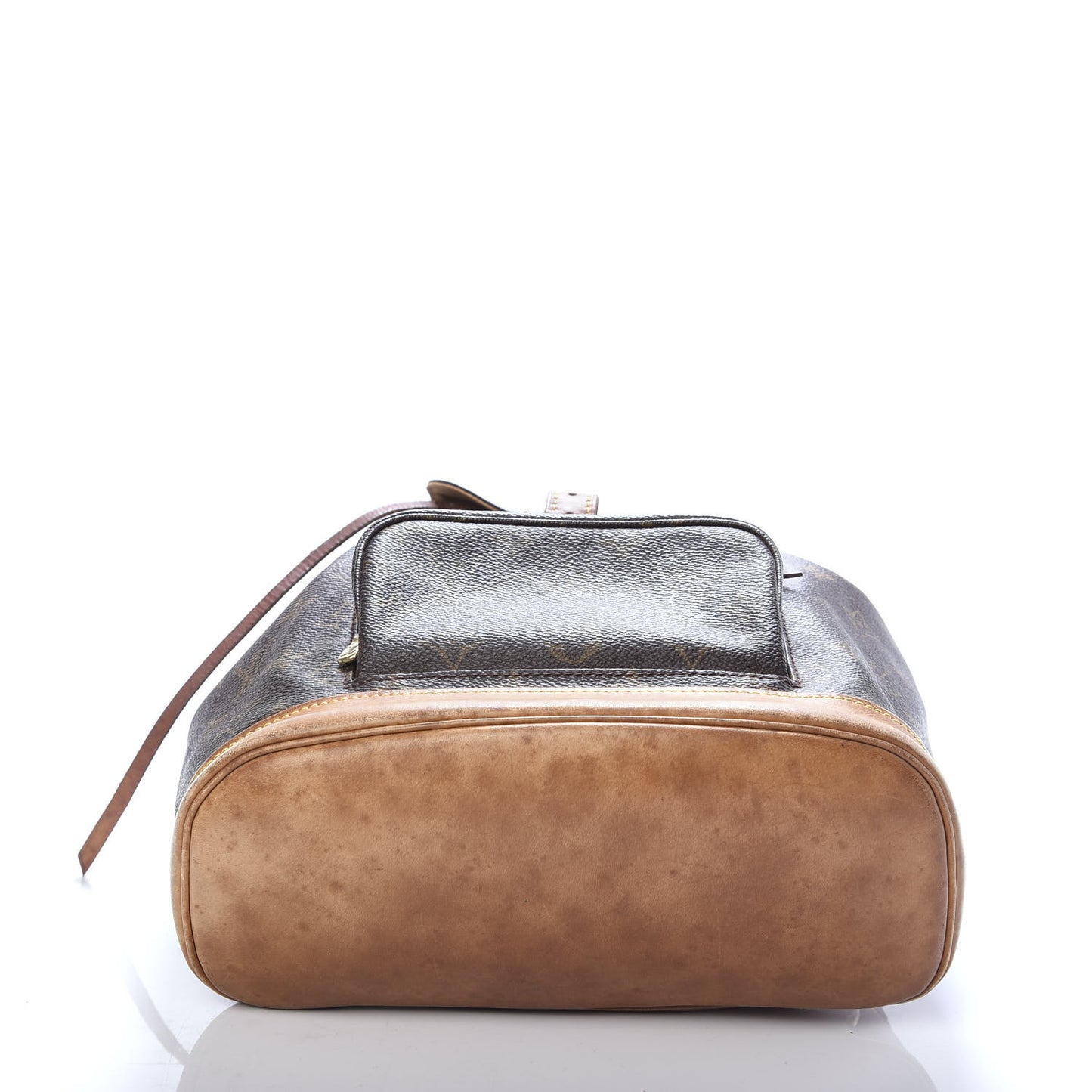 This is the authentic LOUIS VUITTON Monogram Montsouris MM Backpack. This backpack is crafted of monogram coated canvas, with vachetta leather trim, straps, cinch cord, and flat base. The bag features brass hardware, an exterior zipper pocket, and a crossover flap with a belt closure. The bag opens to a cocoa brown fabric interior with a patch pocket and a D-ring. This is an ideal everyday backpack, from Louis Vuitton!Follow this item for alerts. Louis Vuitton is a registered trademark of Louis Vuitton. FASHIONPHILE is not affiliated with Louis Vuitton.