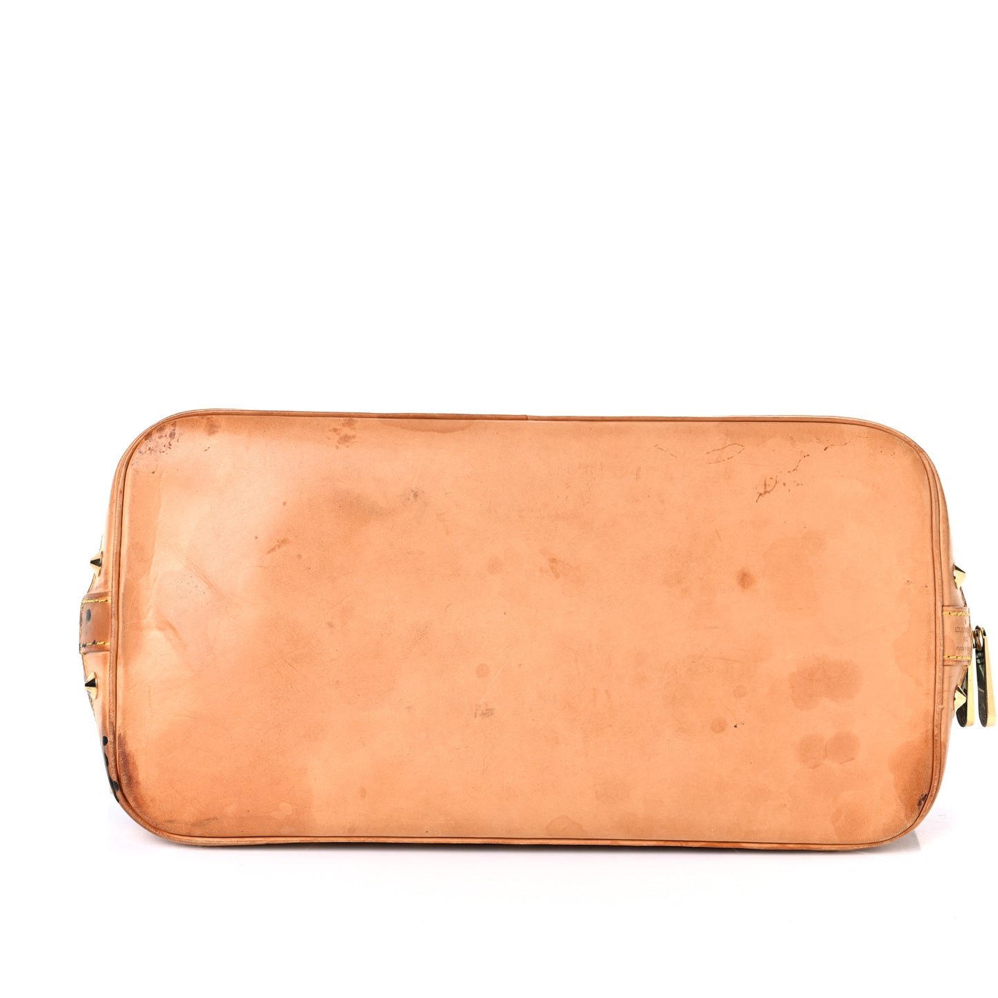 Exterior: Corner wear, creases, scuffs, patina of vachetta, edge wear, marks, liquid marks, stain(s), surface wear