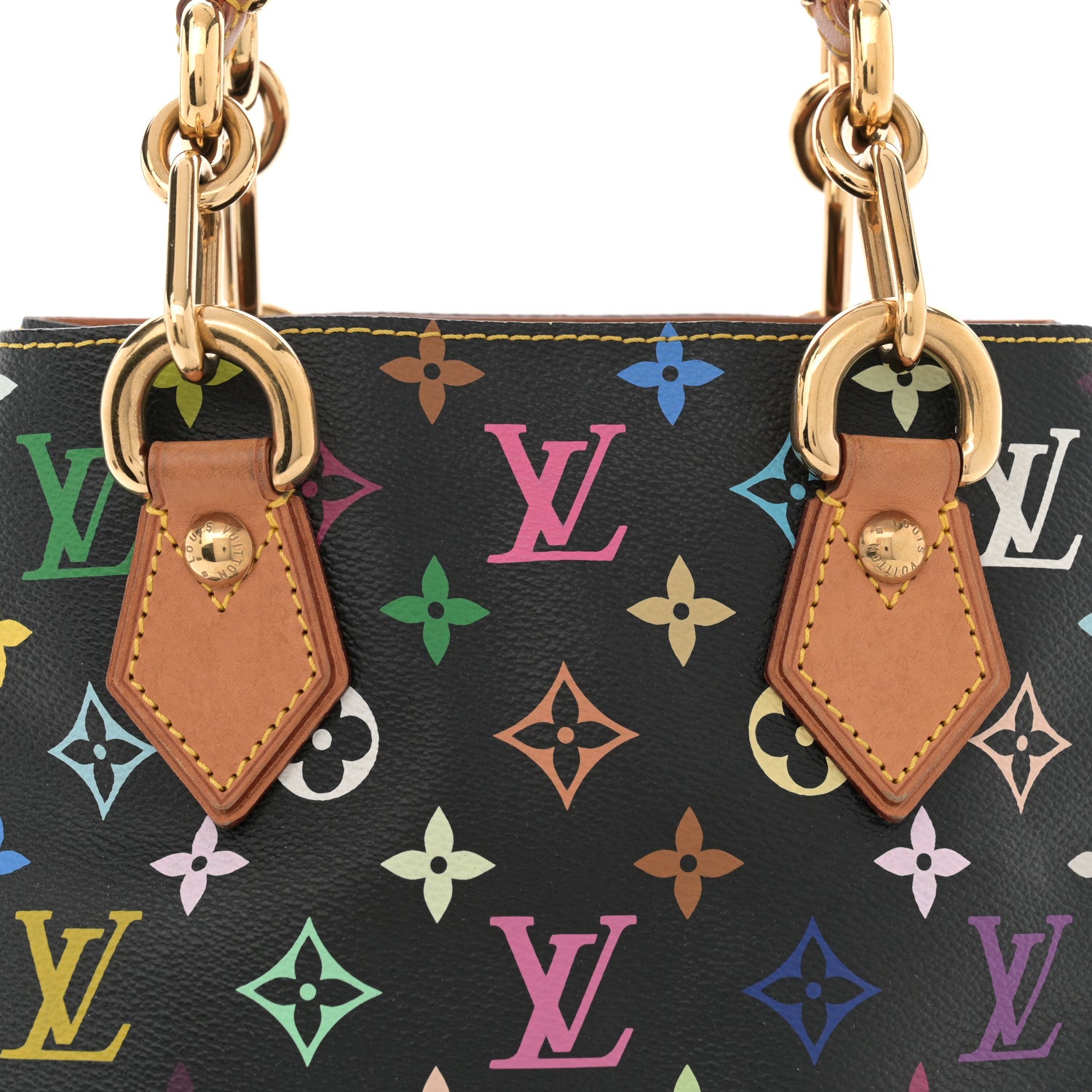 This is an authentic LOUIS VUITTON Monogram Multicolor Audra in Black. This bag is crafted of multicolore monogram coated canvas. The bag features vachetta cowhide leather corners and top handles with gold-toned chain links. The top is open to a partitioned taupe microfiber interior with a patch pocket.Follow this item for alerts. Louis Vuitton is a registered trademark of Louis Vuitton. FASHIONPHILE is not affiliated with Louis Vuitton.