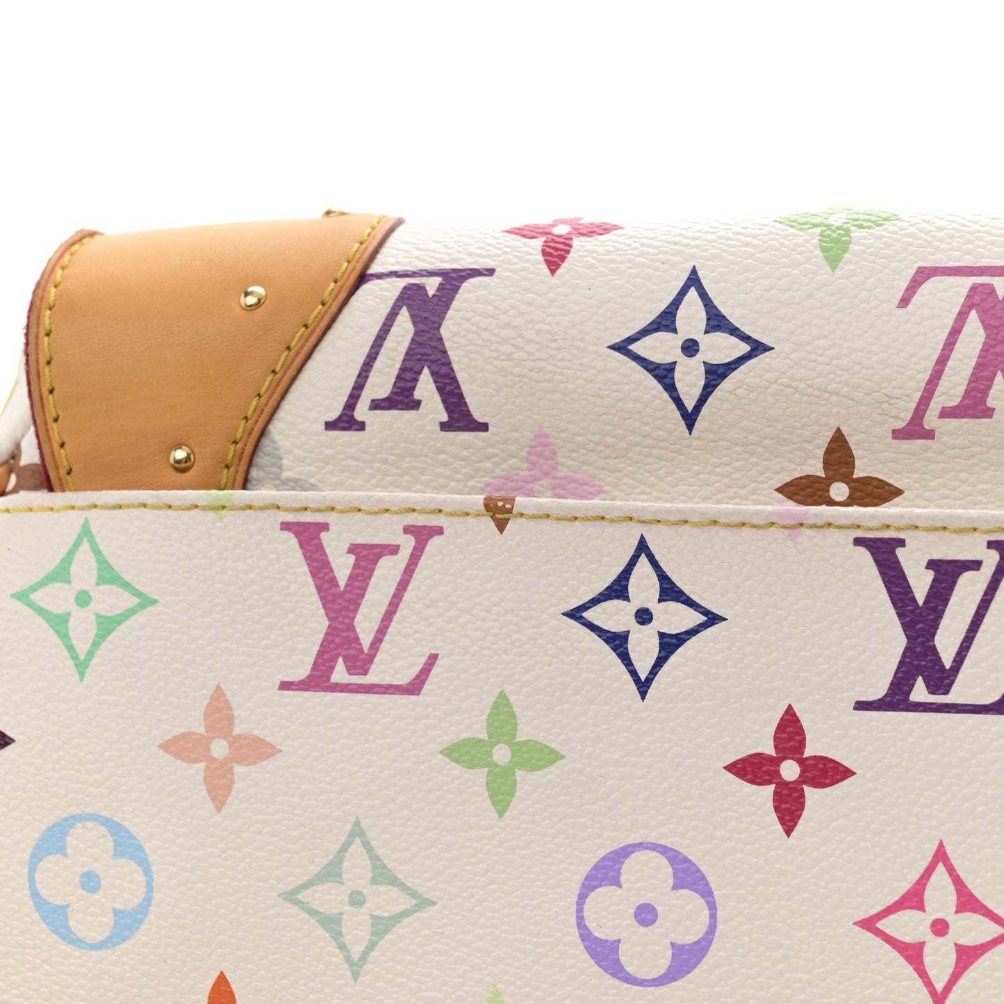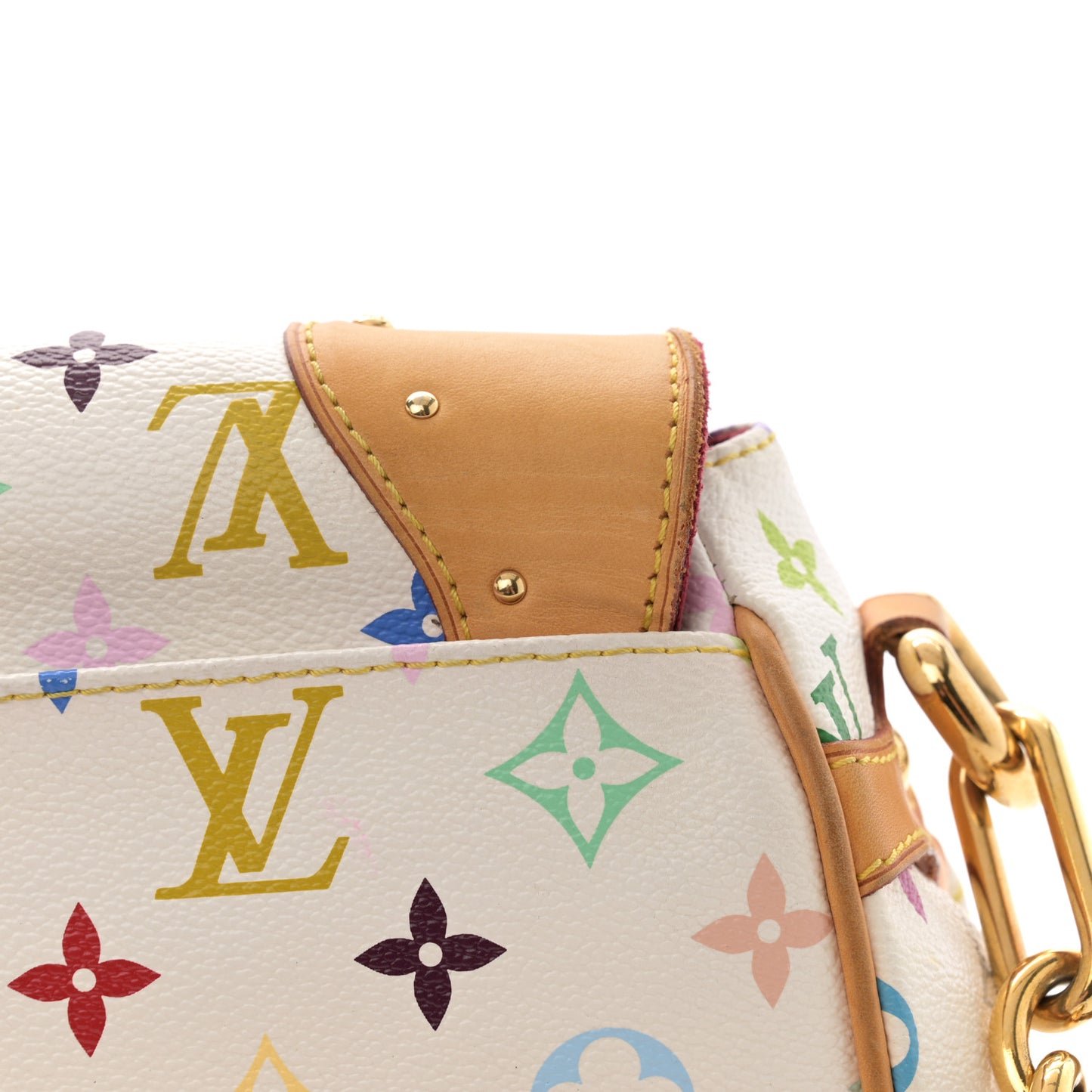 This is an authentic LOUIS VUITTON Multicolor Beverly MM in White. This chic shoulder bag is crafted of multicolored Louis Vuitton monogram in 33 vibrant colors on white coated canvas. The bag features a looping vachetta leather shoulder strap with polished brass links, and vachetta leather trim. The crossover flap opens with a brass press lock to a raspberry red microfiber interior with patch pockets.Follow this item for alerts. Louis Vuitton is a registered trademark of Louis Vuitton. FASHIONPHILE is not affiliated with Louis Vuitton.