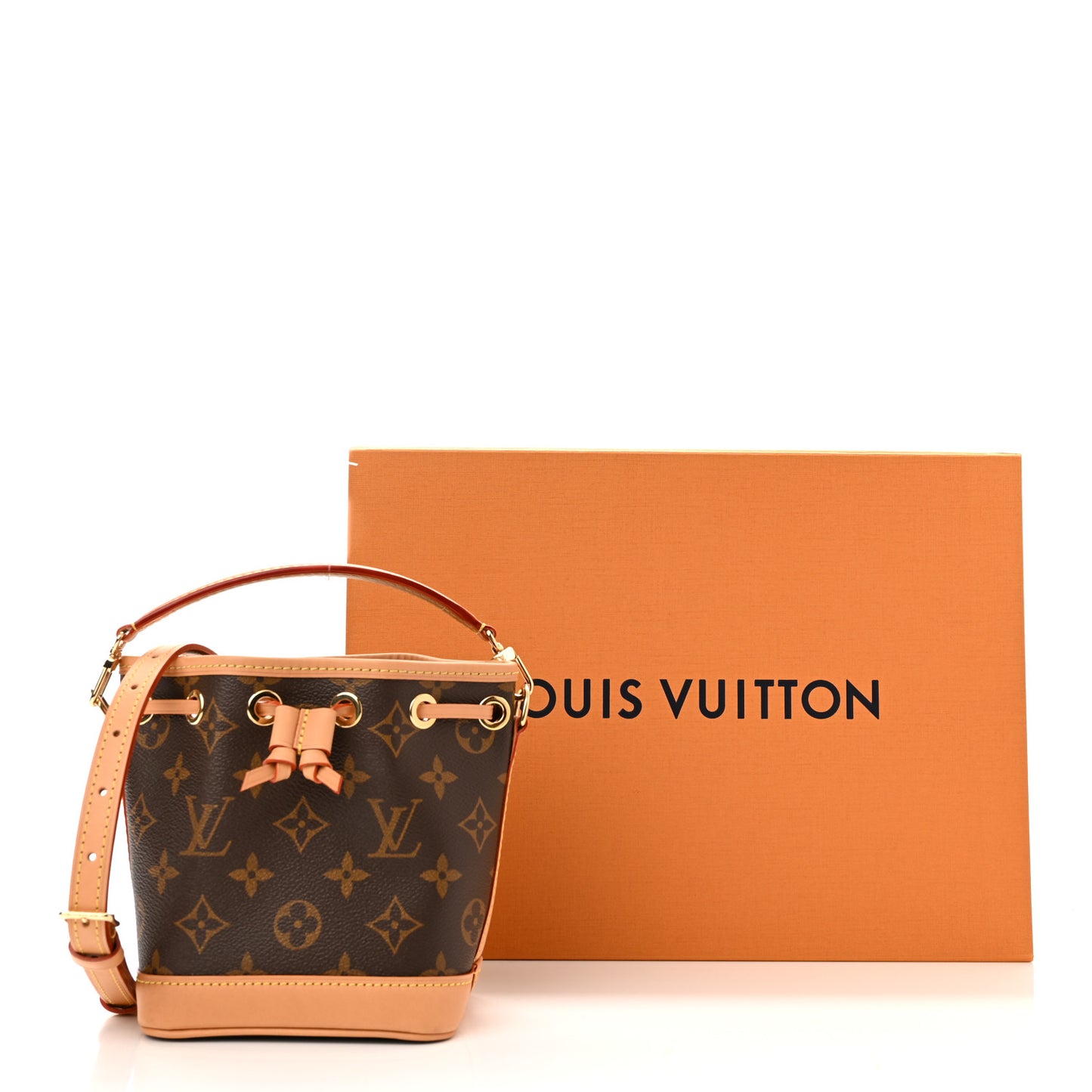 This is an authentic LOUIS VUITTON Monogram Nano Noe NV. This stylish Louis Vuitton bucket handbag is crafted of traditional Louis Vuitton monogram on coated canvas. This bag features signature vachetta leather, a cinch cord, and piping with brass hardware. The top opens to a cocoa brown microfiber interior.Follow this item for alerts. Louis Vuitton is a registered trademark of Louis Vuitton. FASHIONPHILE is not affiliated with Louis Vuitton.