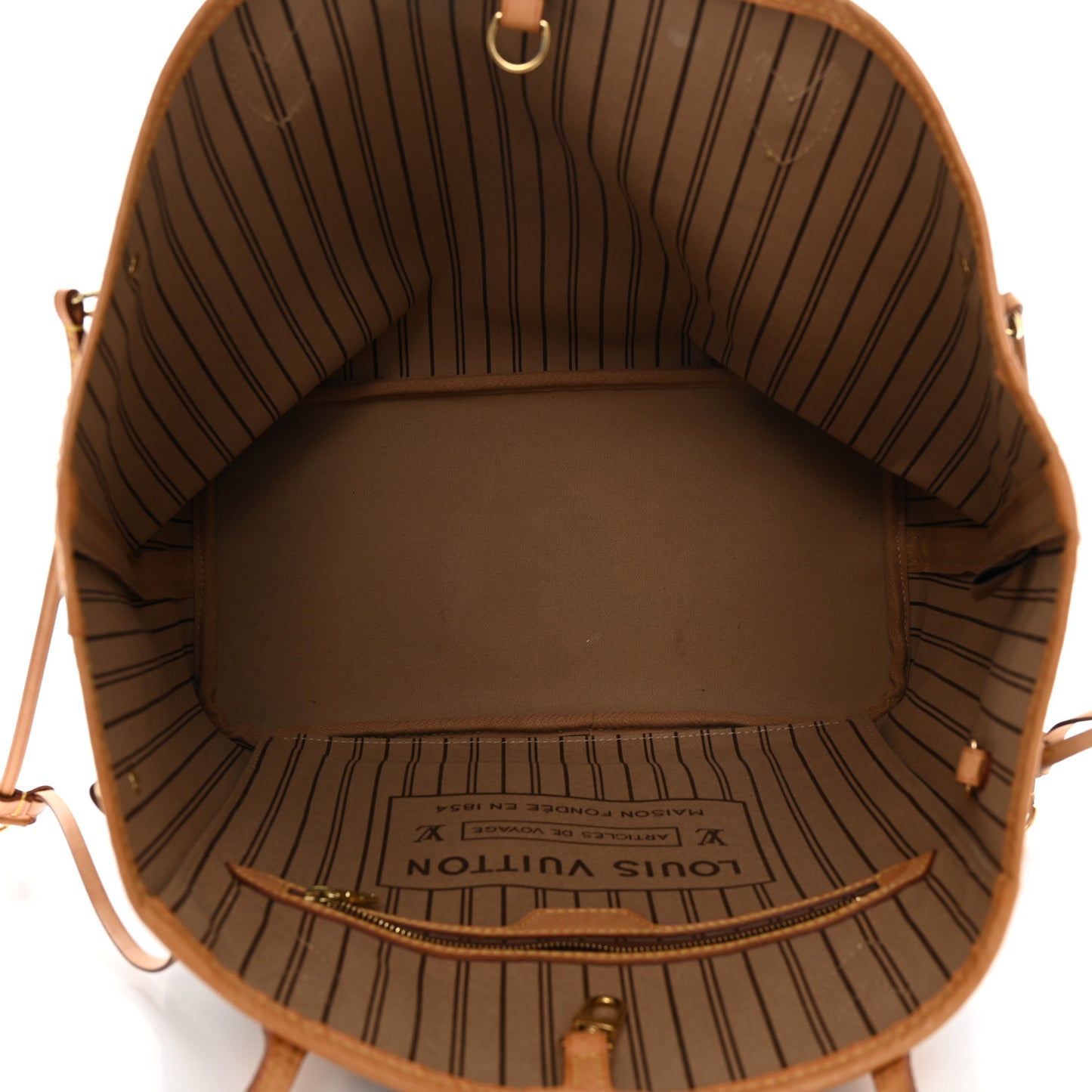 This is an authentic LOUIS VUITTON Monogram Neo Neverfull MM. This stylish tote is crafted of classic Louis Vuitton monogram on coated canvas. It features vachetta cowhide leather trim, shoulder straps and side cinch cords. The top is open to a beige striped fabric interior with a hanging zipper pocket.Follow this item for alerts. Louis Vuitton is a registered trademark of Louis Vuitton. FASHIONPHILE is not affiliated with Louis Vuitton.