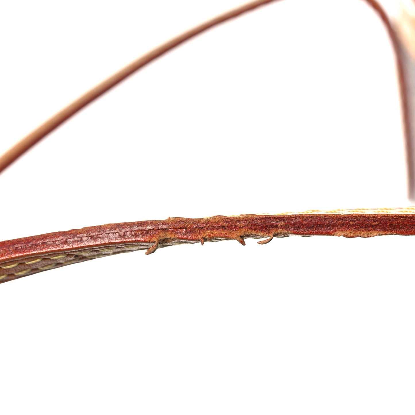 Handle: Edge wear, creases, wear at resin glazing, patina of vachetta, liquid marks