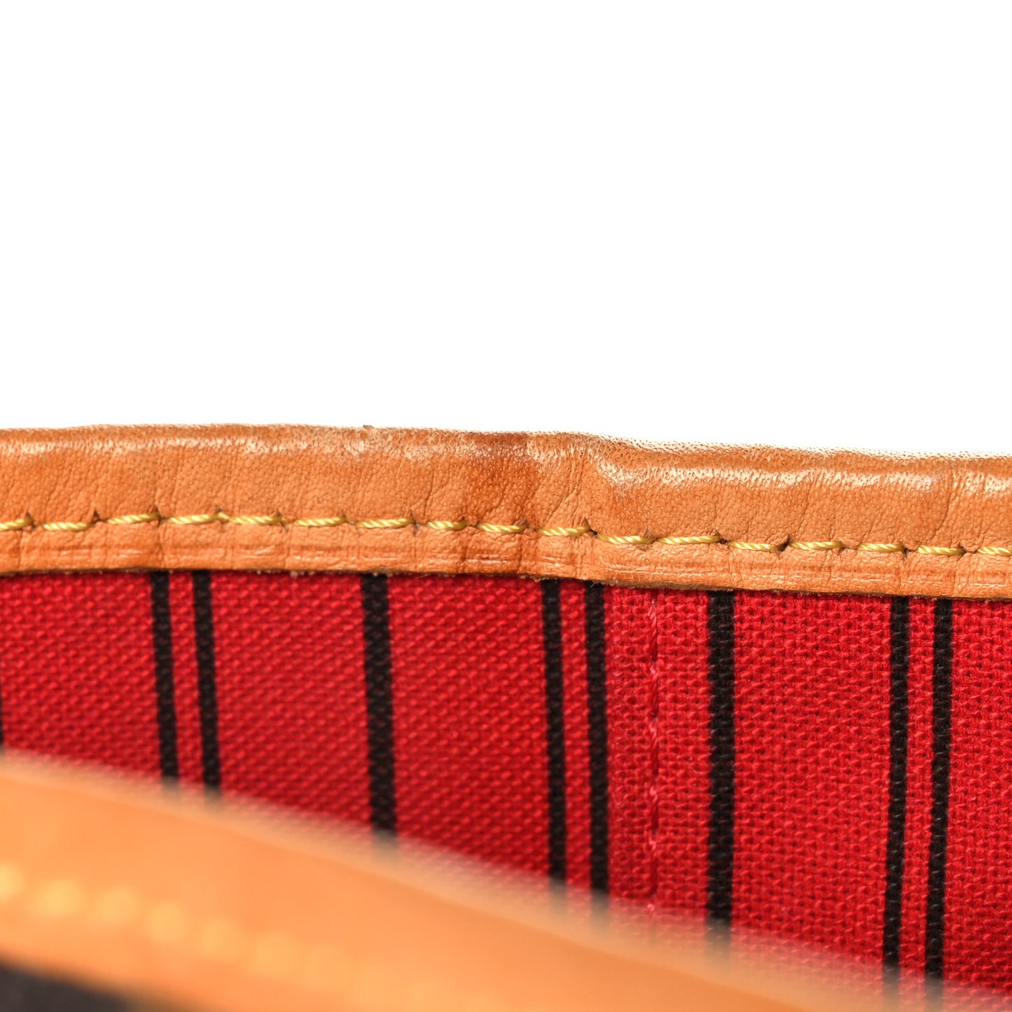 This is an authentic LOUIS VUITTON Monogram Neo Neverfull MM Cherry. This chic tote is finely crafted of signature Louis Vuitton monogram on coated canvas. This shoulder bag features vachetta cowhide leather shoulder straps, side cinch cords, and trim with polished brass hardware. The wide top opens to a striped red fabric interior with a hanging zipper pocket.Follow this item for alerts. Louis Vuitton is a registered trademark of Louis Vuitton. FASHIONPHILE is not affiliated with Louis Vuitton.