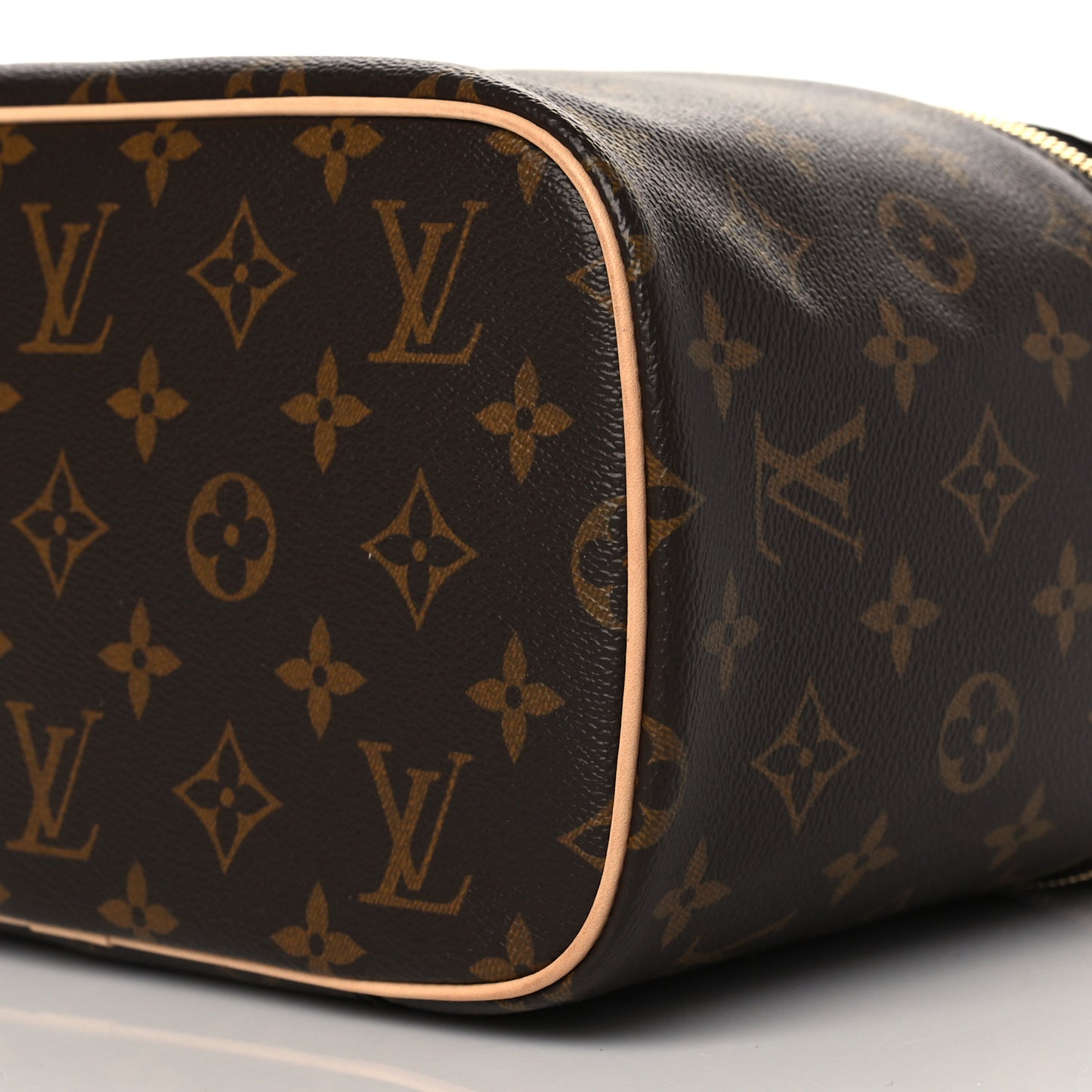 This is an authentic LOUIS VUITTON Monogram Nice BB. This handy travel bag, named after the French city of Nice, is crafted from the traditional Louis Vuitton monogram canvas. The case features a vachetta cowhide leather top handle and piping trim. The polished gold wrap-around zipper opens to a beige-coated canvas lining with zipper and patch pockets.Follow this item for alerts. Louis Vuitton is a registered trademark of Louis Vuitton. FASHIONPHILE is not affiliated with Louis Vuitton.